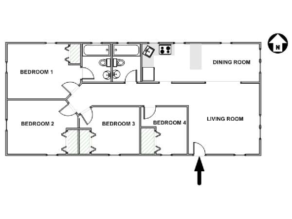 Bitte beachten Sie, dass diese Wohnung entweder als gesamte Wohneinheit als 5-Zimmer-Wohnung oder als geteilte Wohneinheit gemietet werden kann, wo in diesem Falle die vier Schlafzimmer separat gemietet und die Gemeinschaftsbereiche gemeinsam genutzt werden.