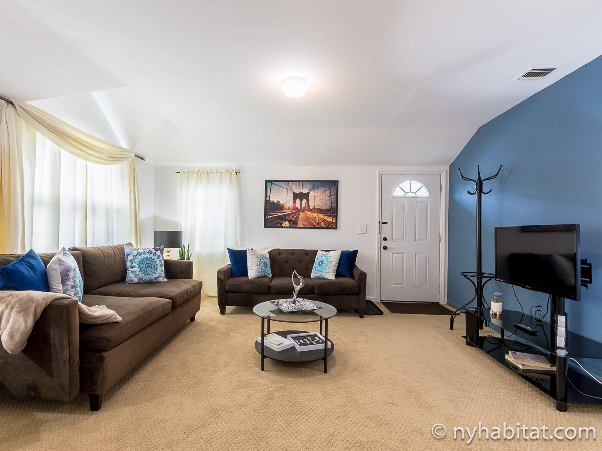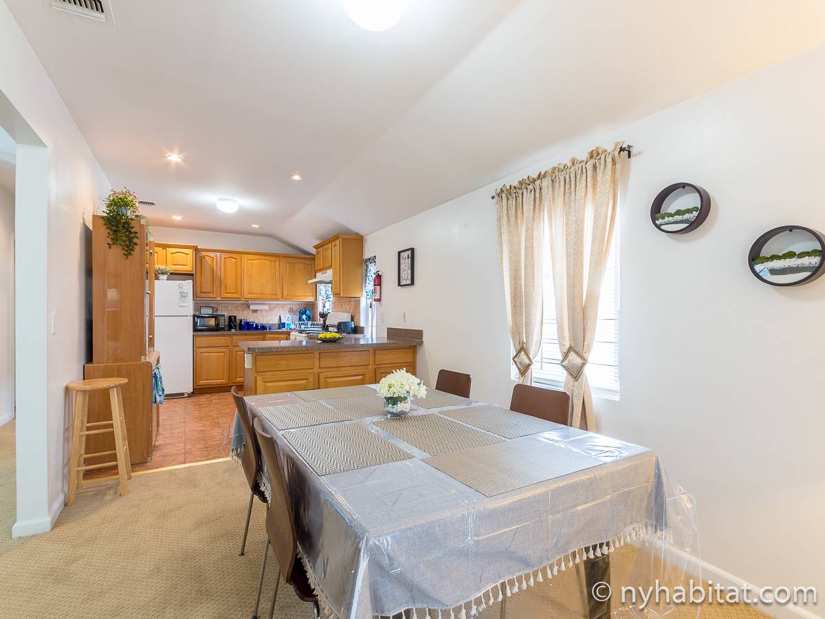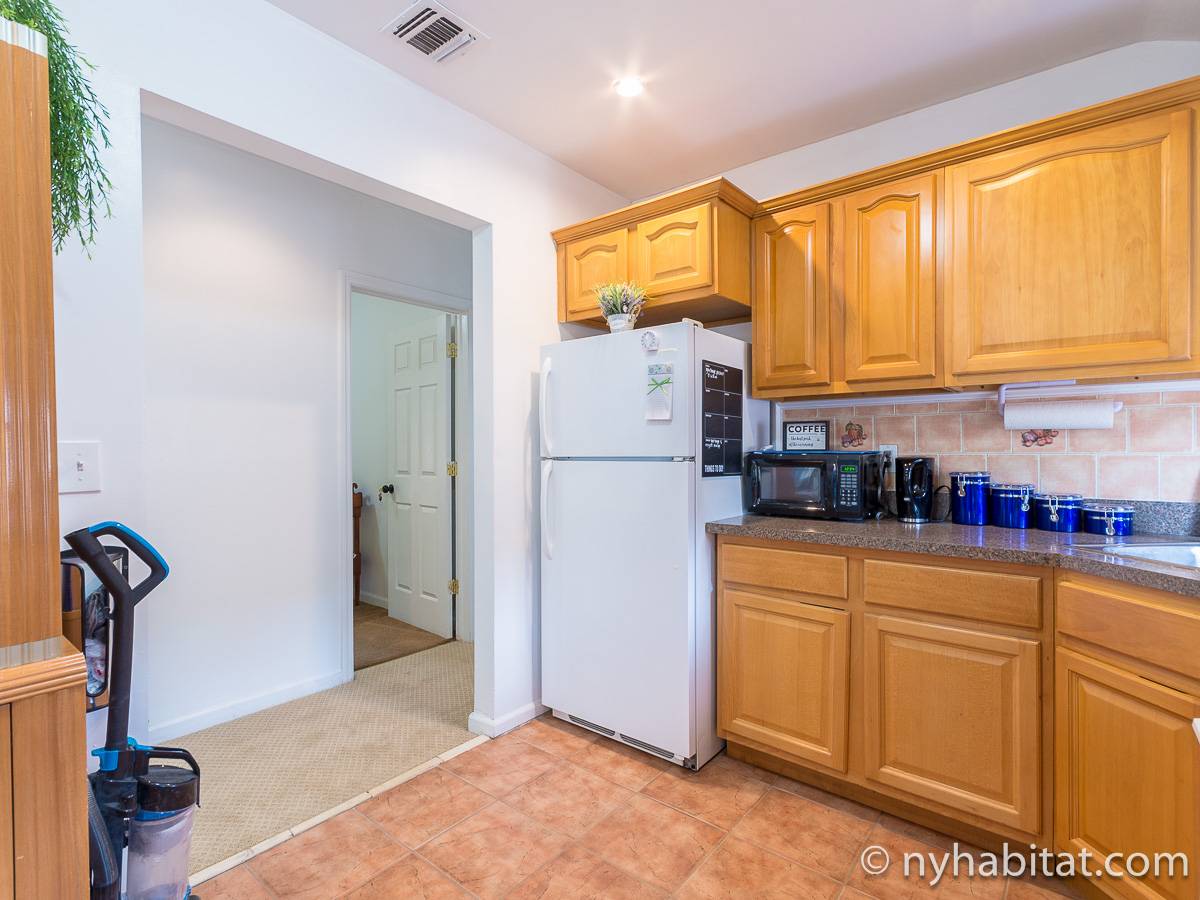 Diese 5-Zimmer-Wohnung mit zwei Badezimmern befindet sich im 2. Stock (entspricht in Europa dem 1. Stock) eines Zweifamilienhauses in der Nähe der 130th Avenue und 143rd Street im Stadtviertel Jamaica vom New Yorker Stadtbezirk Queens.