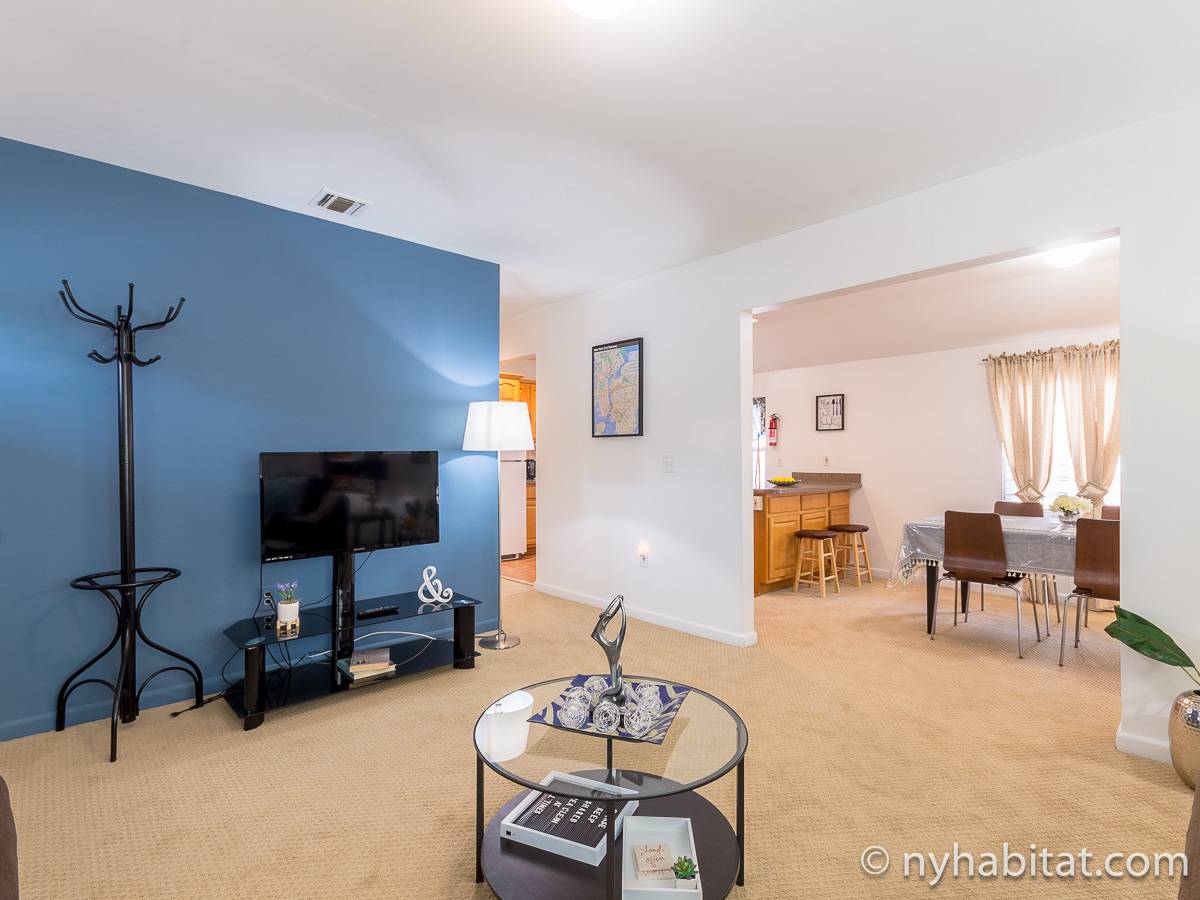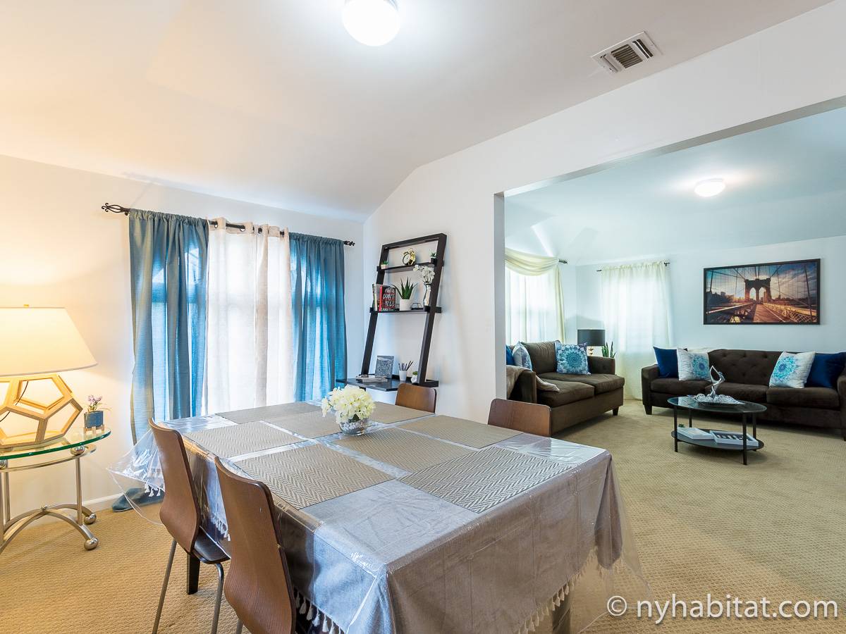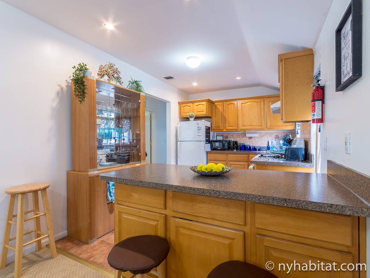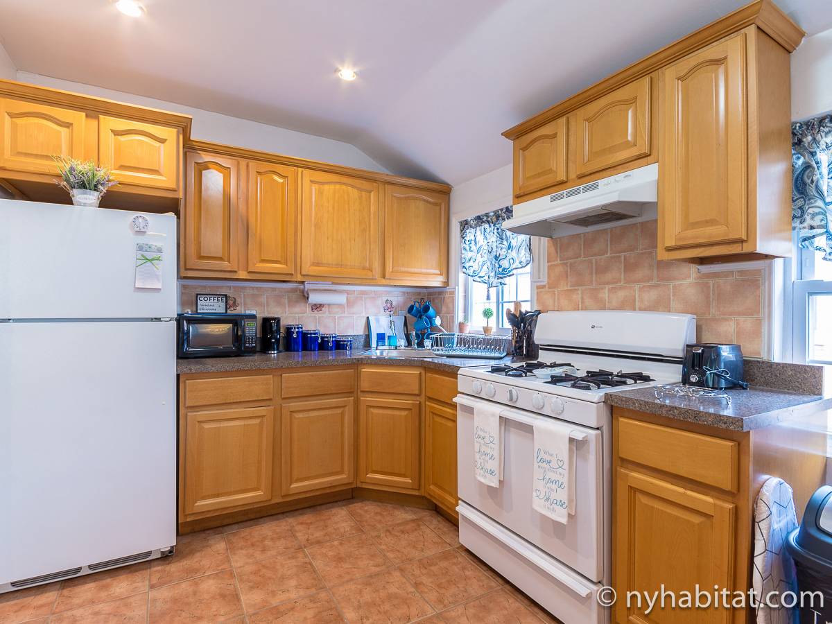 Diese 5-Zimmer-Wohnung mit zwei Badezimmern befindet sich im 2. Stock (entspricht in Europa dem 1. Stock) eines Zweifamilienhauses in der Nähe der 130th Avenue und 143rd Street im Stadtviertel Jamaica vom New Yorker Stadtbezirk Queens.