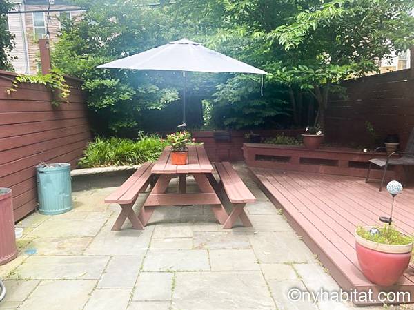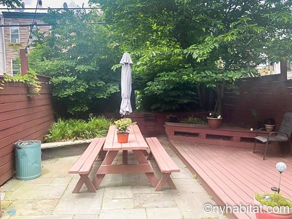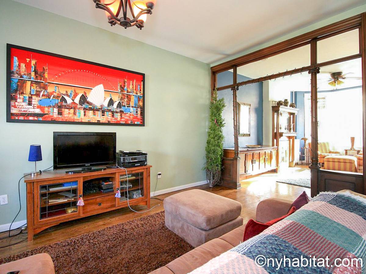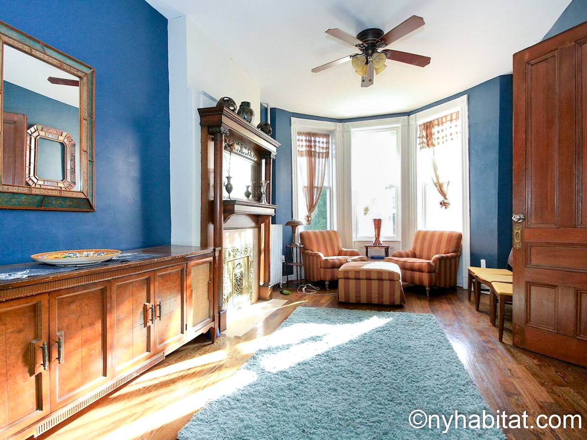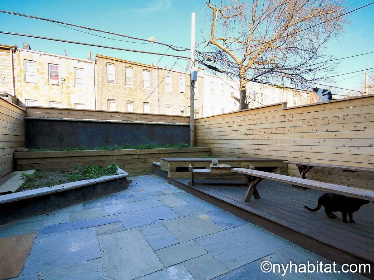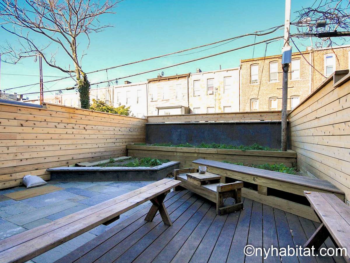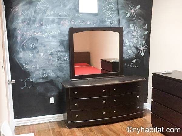 Diese möblierte Wohngemeinschaft liegt in Bushwick, einem Viertel in Manhattan. Die 3-Zimmerwohnung im Maisonette-Stil mit 1 Badezimmer und 1 Gäste-WC befindet sich im 1. und 2. Stock (entspricht in Europa dem Erdgeschoss und 1. Stock) eines Gebäudes ohne Aufzug zwischen der Hancok Street und Wilson Avenue.