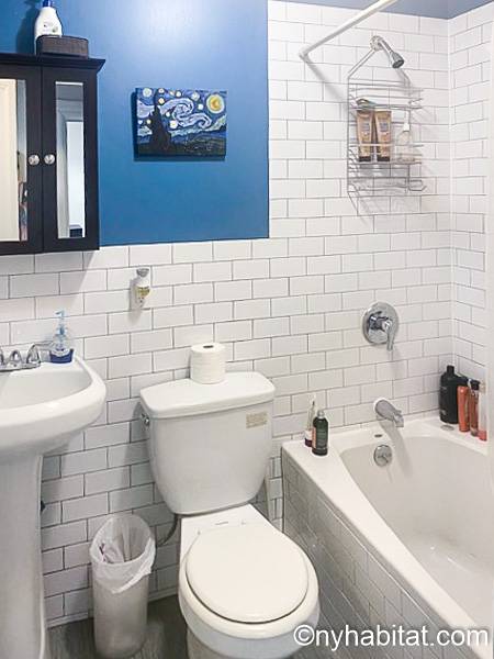 Die WG umfasst ein Wohnzimmer, eine Küche und ein Bad (das Gäste-WC ist nicht verfügbar), die alle mit den Mitbewohnern geteilt werden. Das Wohnzimmer verbindet die Räume, es streckt sich von einem Ende der Wohnung zum anderen. Es verfügt über Hartholzböden, eine Klimaanlage und einen Fernseher. An einem Ende finden Sie einen dekorativen Kamin und ein Erkerfenster für Ihre morgendlichen Aktivitäten und abendlichen Konversationen. Die Küche ist mit einem Herd mit Backofen, einem Kühlschrank und einer Mikrowelle ausgestattet. Das Bad hat eine Dusche mit Badewanne.