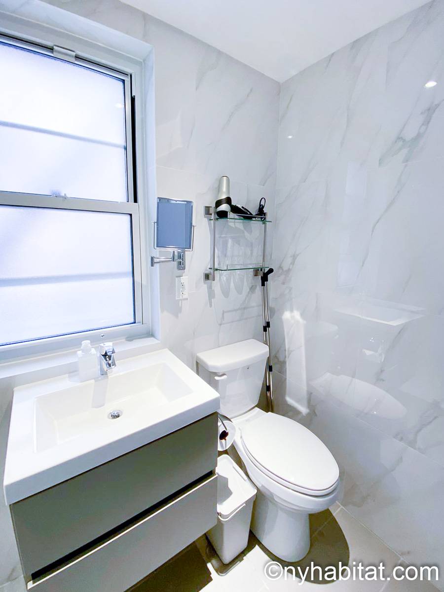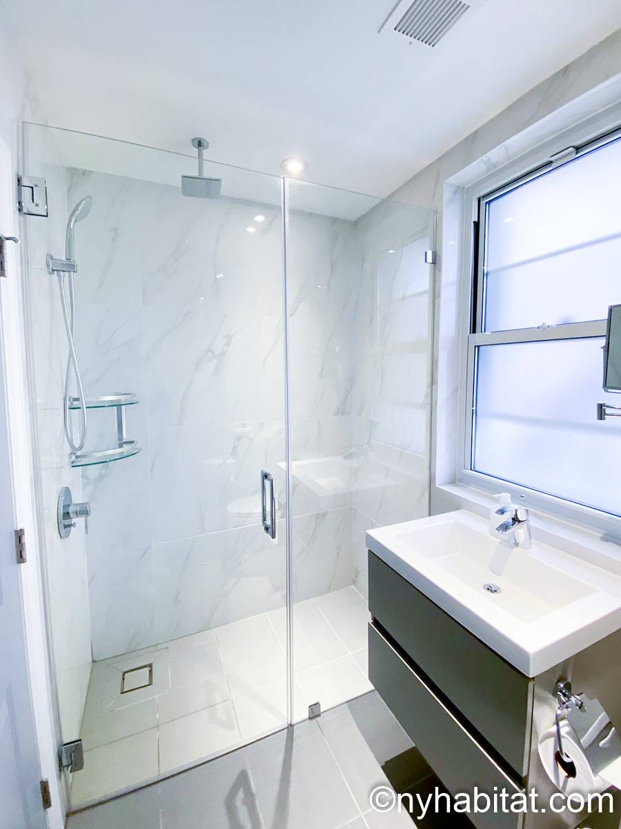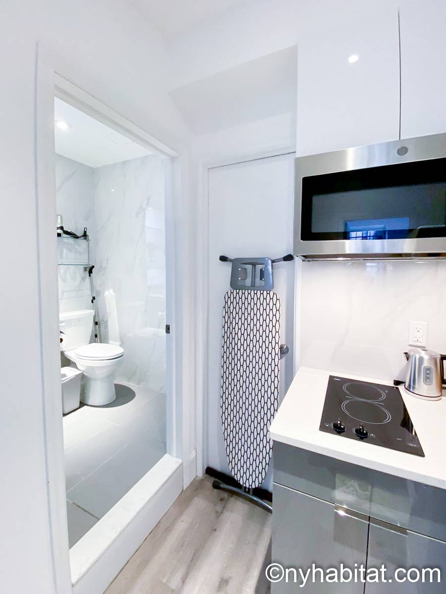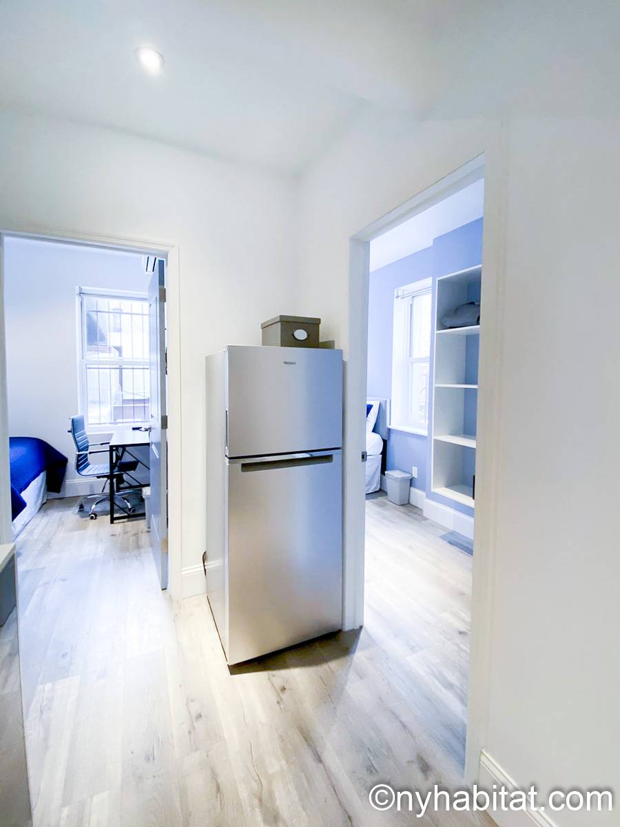 Diese Zweizimmerwohnung kann sowohl insgesamt als möblierte Wohnung vermietet werden, sie kann aber auch als Wohngemeinschaft fungieren, in der jedes der Zimmer separat zur Miete steht, Wohnbereich, Küche und Badezimmer aber mit den anderen Bewohnern geteilt werden. Die möblierte Wohnung befindet sich auf der 2nd Avenue und East 5th Street in East Village, New York! Die Unterkunft, deren Wohnraum insgesamt 27 Quadratmeter beträgt, liegt im dritten Stock (äquivalent mit dem zweiten Stockwerk in Europa).