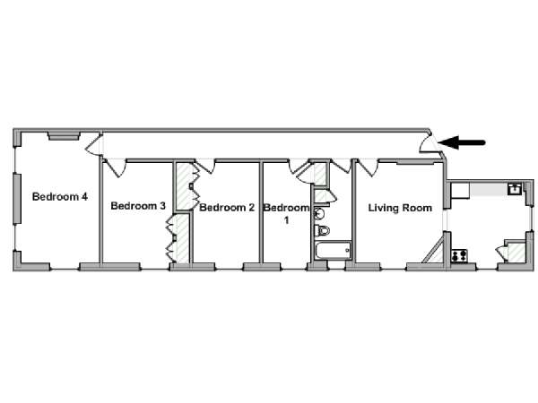 Diese Wohngemeinschaft liegt in der obersten Etage (entspricht in Europa dem 4. Stock) eines klassischen Flachbaus von 1910 und verfügt über einen Kamin im Wohnzimmer und in einem der Schlafzimmer. Lernen Sie das klassische Leben in New York City kennen. Wenn Sie durch die Haustür treten, werden Sie von einem großen Flur begrüßt und finden alle Zimmer auf der linken Seite. Der erste Raum ist das Wohnzimmer, das mit der Küche verbunden ist. Das Wohnzimmer ist ein komplett eingerichteter, moderner Raum mit einem Sofa, einer Klimaanlage, einem Fernseher, einem Kamin und einem Fenster. In der Küche, dem nächsten Zimmer, finden Sie einen Kühlschrank, eine Kaffeemaschine, einen Toaster, einen Herd mit Backofen und zwei große Fenster. Die Schlafzimmer sind alle komplett möbliert mit modernen Möbeln. Sie haben die Möglichkeit, zwischen einem Einzelbett oder einem Queensize-Bett zu wählen. Die Schlafzimmer sind mit Bettwäsche, Klimaanlage und Fenstern ausgestattet. Im Badezimmer haben Sie eine Duschbadewanne, ein WC, ein Waschbecken mit Unterschränken und einen Spiegel sowie ein Fenster. Diese WG ist mit Hartholzböden ausgelegt.