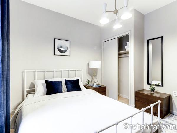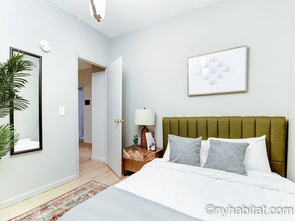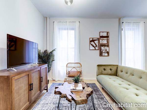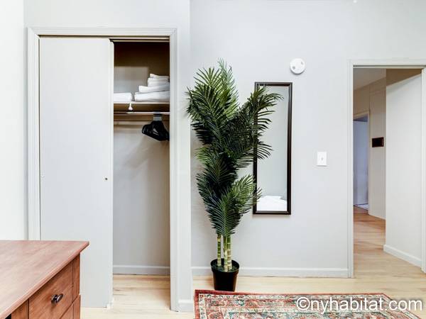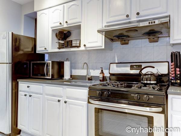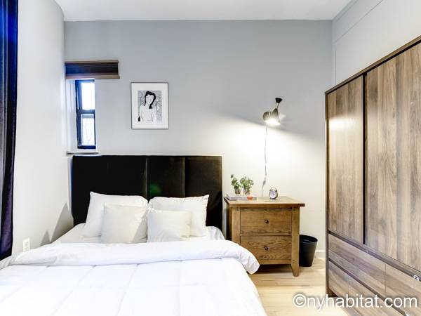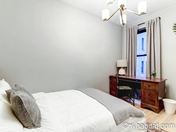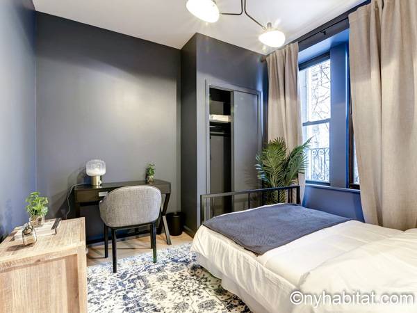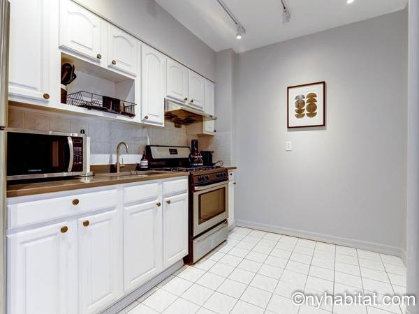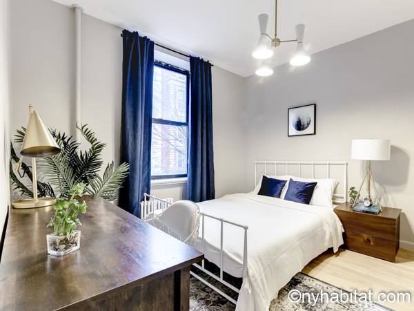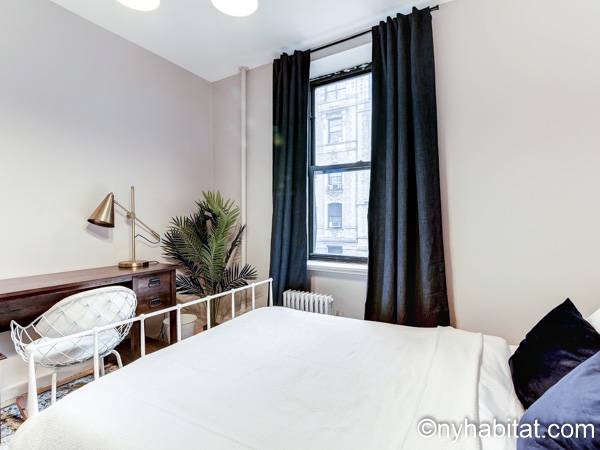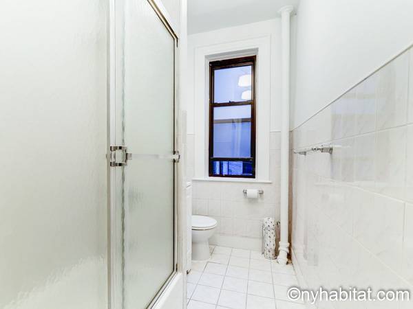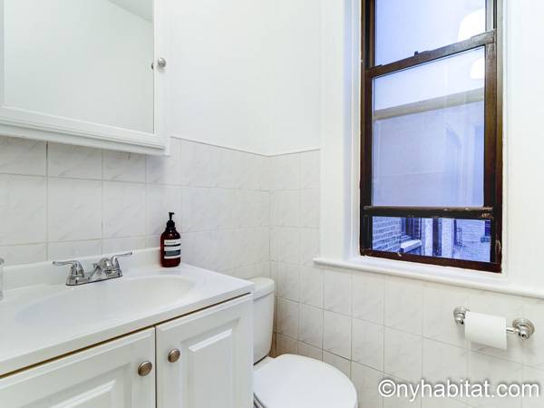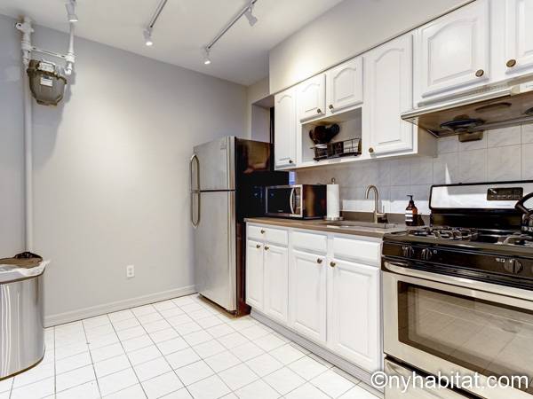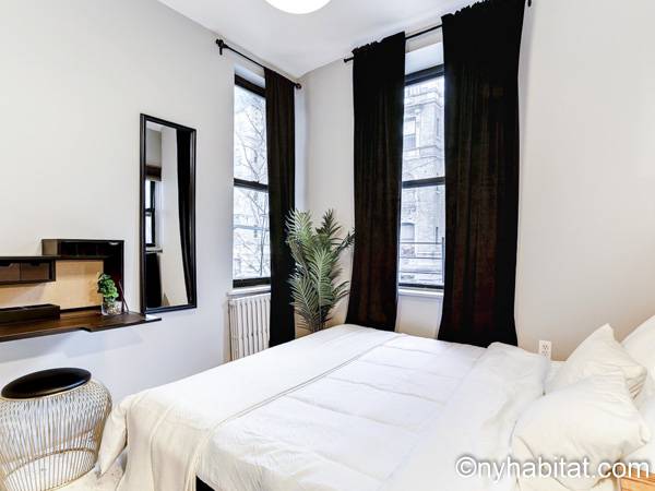 In dieser Gegend finden sich vor allem historische Mehrfamilienhäuser. Die Wohngemeinschaft liegt in einem kleineren Mehrfamilienhaus auf der zweiten Etage (entspricht in Europa der ersten Etage). Die mit Hartholzböden ausgelegte Wohnung ist komplett modern ausgestattet und verfügt dank der Fenster über ausreichend Tageslicht. Das Wohnzimmer besteht aus einem Esstisch, Sofa und Fernseher. Vom Wohnzimmer aus gelangt man in das Badezimmer, das mit einer Dusche mit Schiebetüren, Waschtisch und einem Spiegel sowie WC ausgestattet aus. Außerdem verfügt es über ein Fenster und Handtücher. Hier können Sie sich nach einem ereignisreichen Tag in Uptown erfrischen. Folgen Sie dem Flur weiter, dann gelangen Sie zu den vier Schlafzimmern, von denen jedes mit einem Doppelbett, Schreibtisch, großzügigen Schränken, Teppichen, Nachttischen und großen Spiegeln ausgestattet ist. Alle Zimmer zur Miete verfügen über große Fenster und sind dadurch hell. Die Küche mit Herd, Kühl-Gefrier-Kombination, Mikrowelle, Kaffeemaschine und zahlreichen Schränken lädt zum Zubereiten von Köstlichkeiten ein.