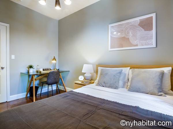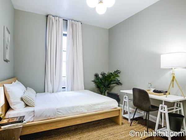 Diese 5-Zimmer-Wohnung befindet sich an der Saint Nicholas Avenue und der West 124th Street im New Yorker Stadtviertel Harlem. Das Gebäude verfügt über eine Möglichkeit zum Waschen von Kleidung und einen Aufzug – eine besondere Leistung, die in New York City selten zu finden ist. Diese Wohngemeinschaft ist 94 m² groß, gut für geschäftliche Aufenthalte geeignet und liegt im 5. Stock (entspricht in Europa dem 4. Stock).