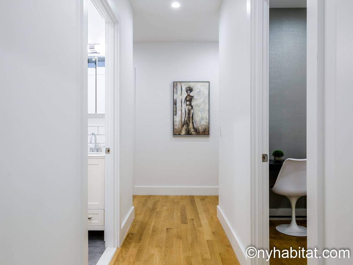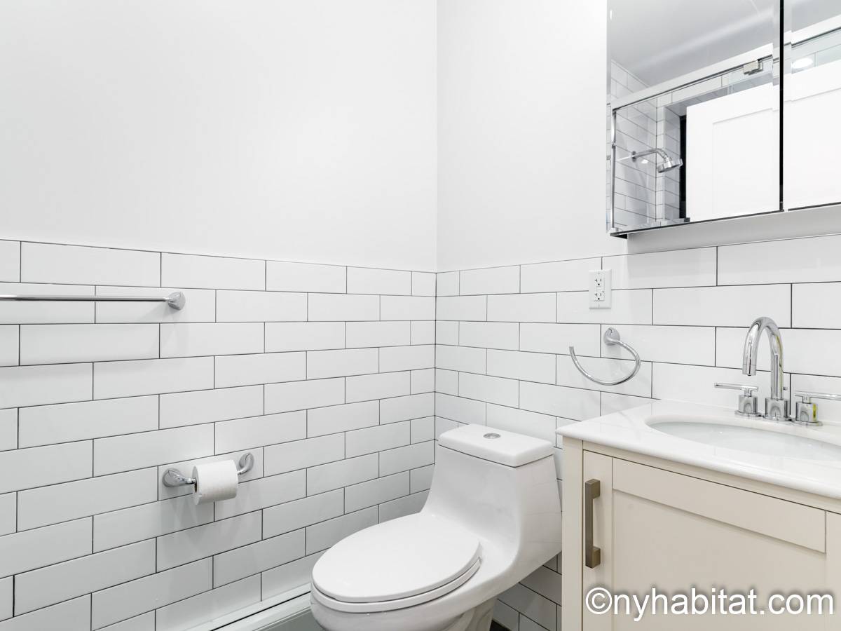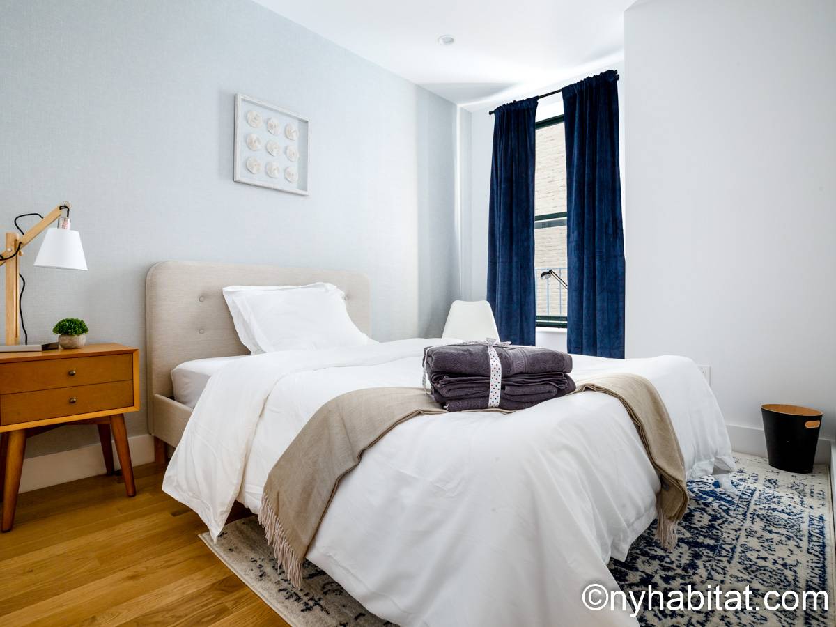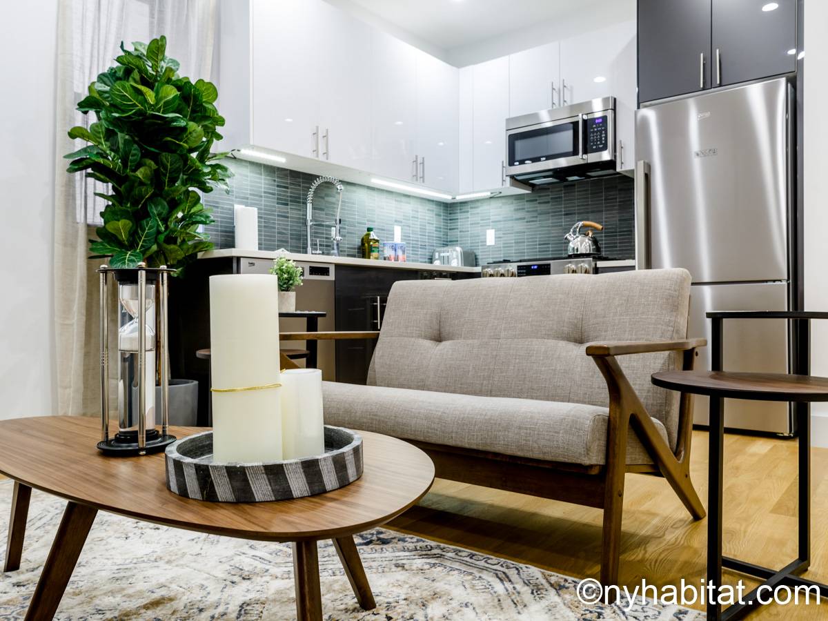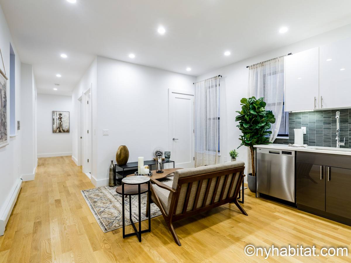 Diese moderne Wohngemeinschaft befindet sich in Harlem, New York City und liegt nur 320 m vom Central Park entfernt. Mit dem Aufzug erreichen Sie die 5-Zimmer-Wohnung im dritten Stock (entspricht in Europa dem 2. Stock), die mit Möbeln aus den 50er Jahren eingerichtet ist und viel Platz bietet. Sie zeichnet sich durch viel natürliches Licht, 2,5 m hohe Decken mit eingelassener Beleuchtung und einer schönen Aussicht auf die Nachbarschaft aus. Das sonnige Wohnzimmer, das sich zur Küche hin öffnet, ist ebenfalls ein zusätzliches Plus.