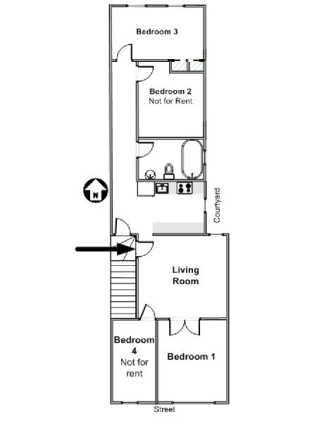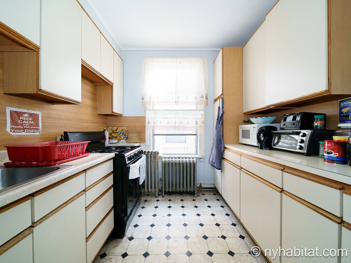 Diese New Yorker WG befindet sich zwischen Nostrand Avenue und Midwood Street in einem Gebäude mit Pförtner. Die 5-Zimmer-Wohnung befindet sich im obersten Stockwerk dieses zweistöckigen Reihenhauses (es gibt keinen Aufzug).