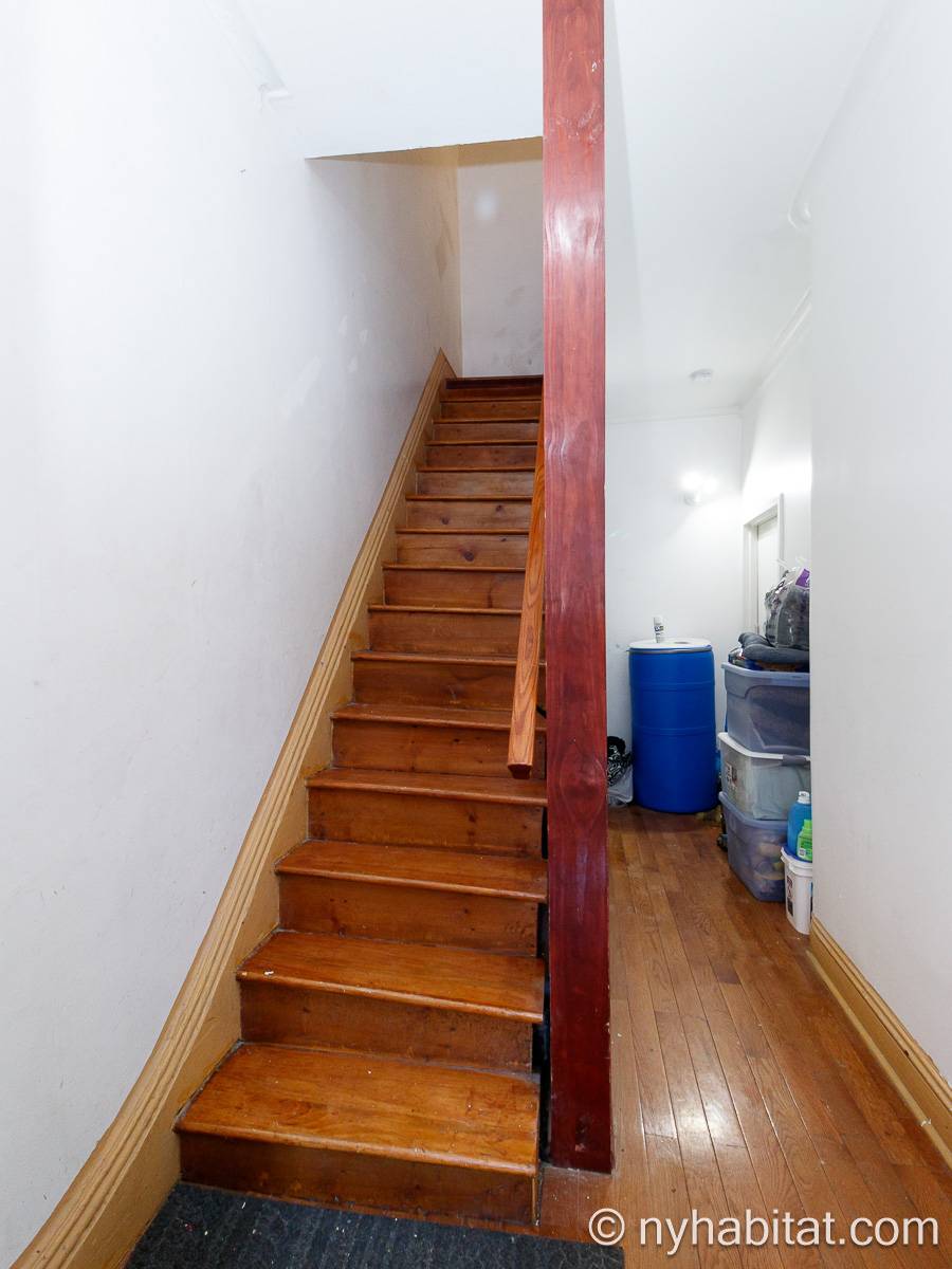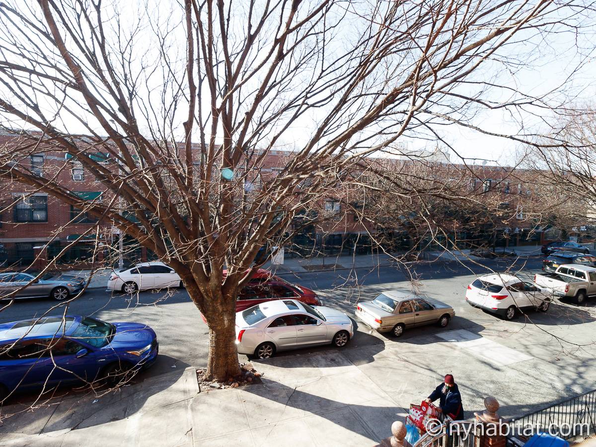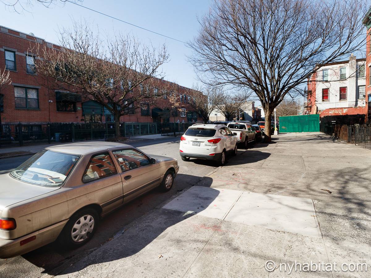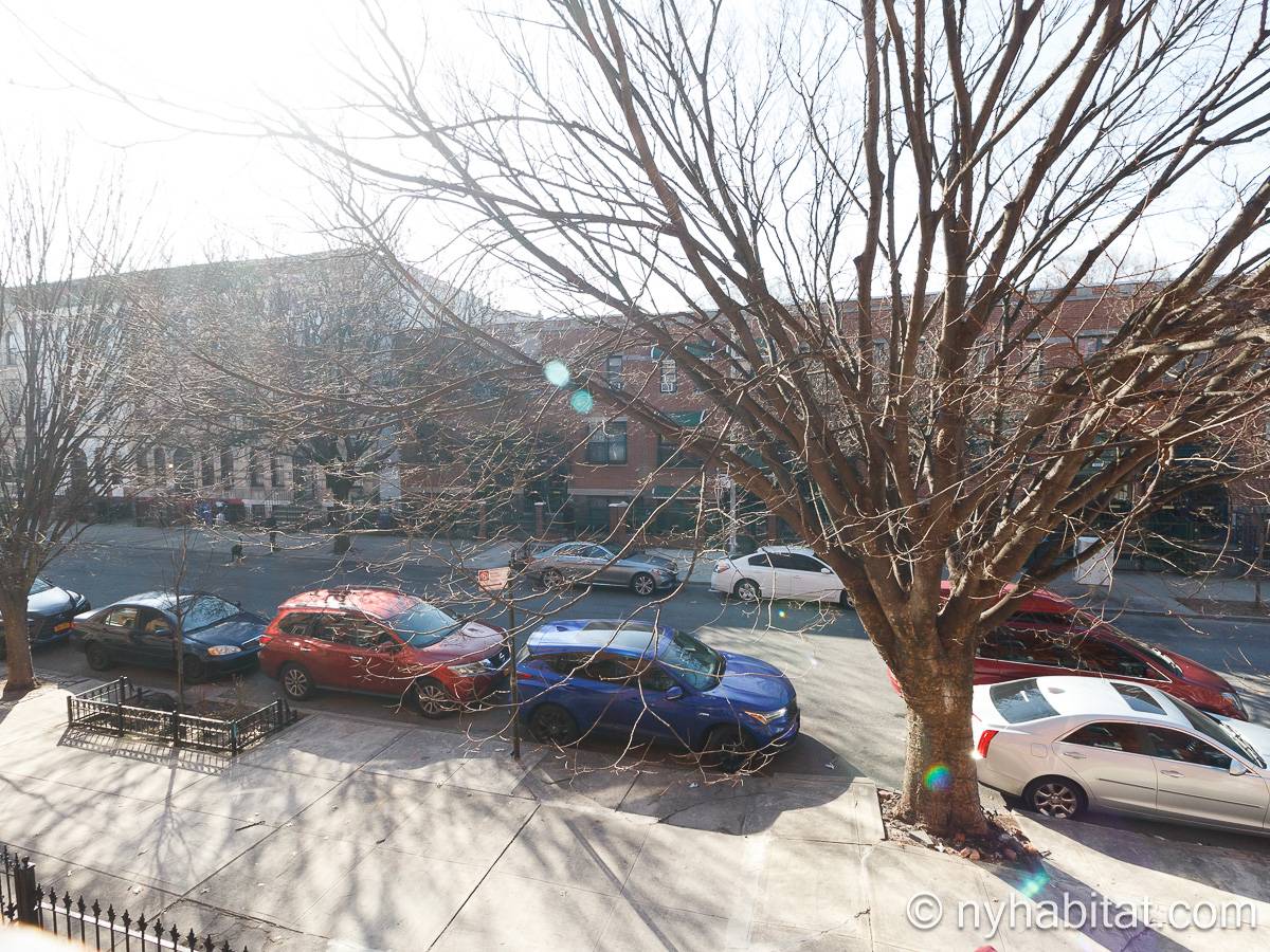 Diese Mietwohnung mit einer Wohnfläche von 70 m² befindet sich im zweiten Stock (entspricht in Europa dem ersten Stock) eines dreistöckigen Reihenhauses, das nahe der Kreuzung Marion Street und Saratoga Avenue liegt. Die Wohnung ist mit eine Waschmaschine und einen Trockner und Parkettböden ausgelegt. Das Gebäude hat keinen Aufzug.