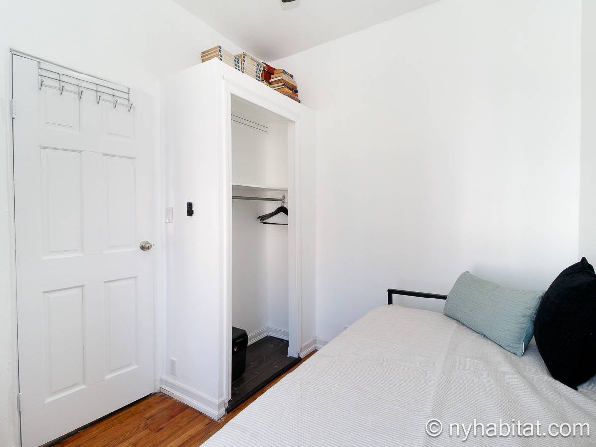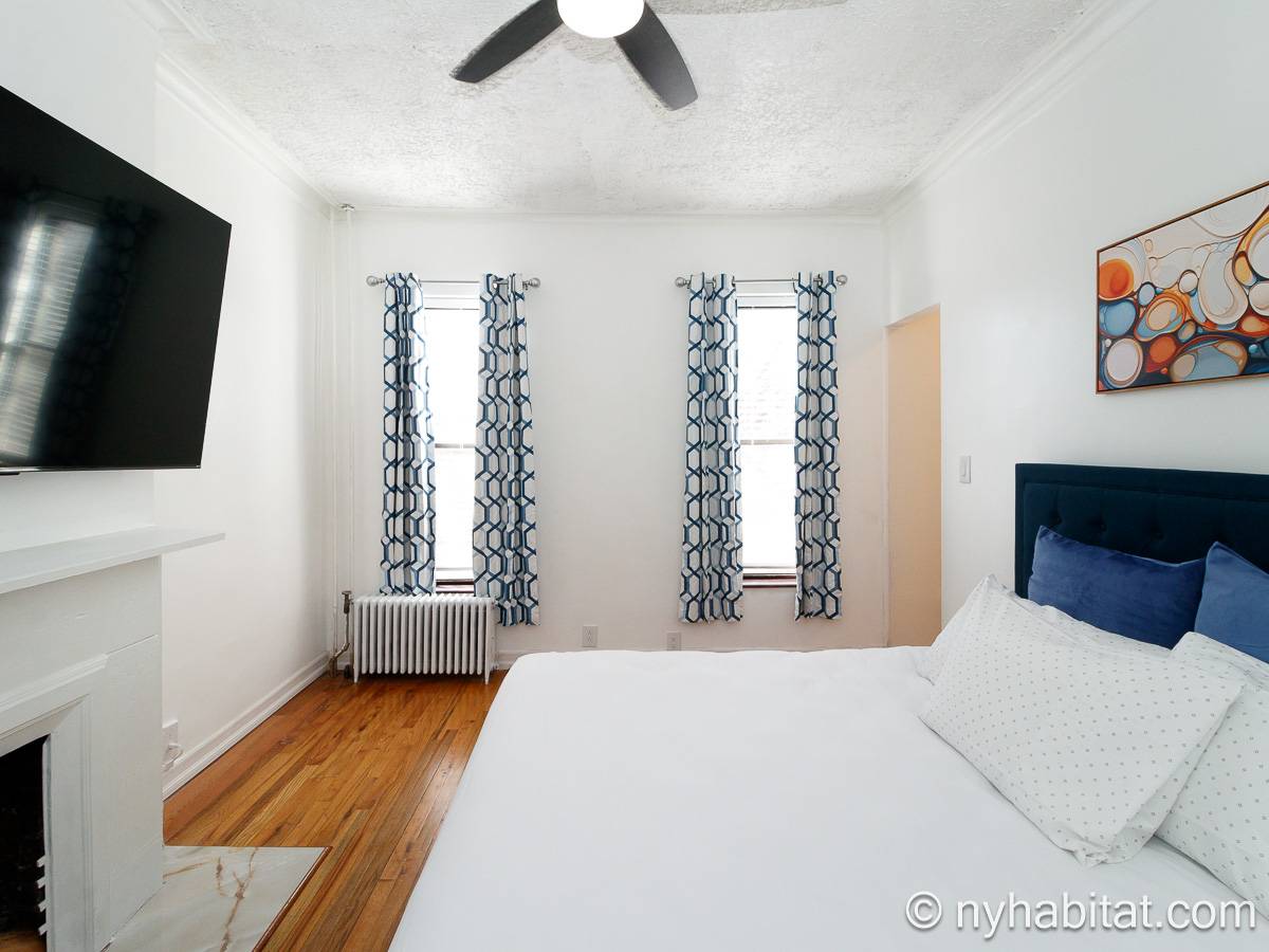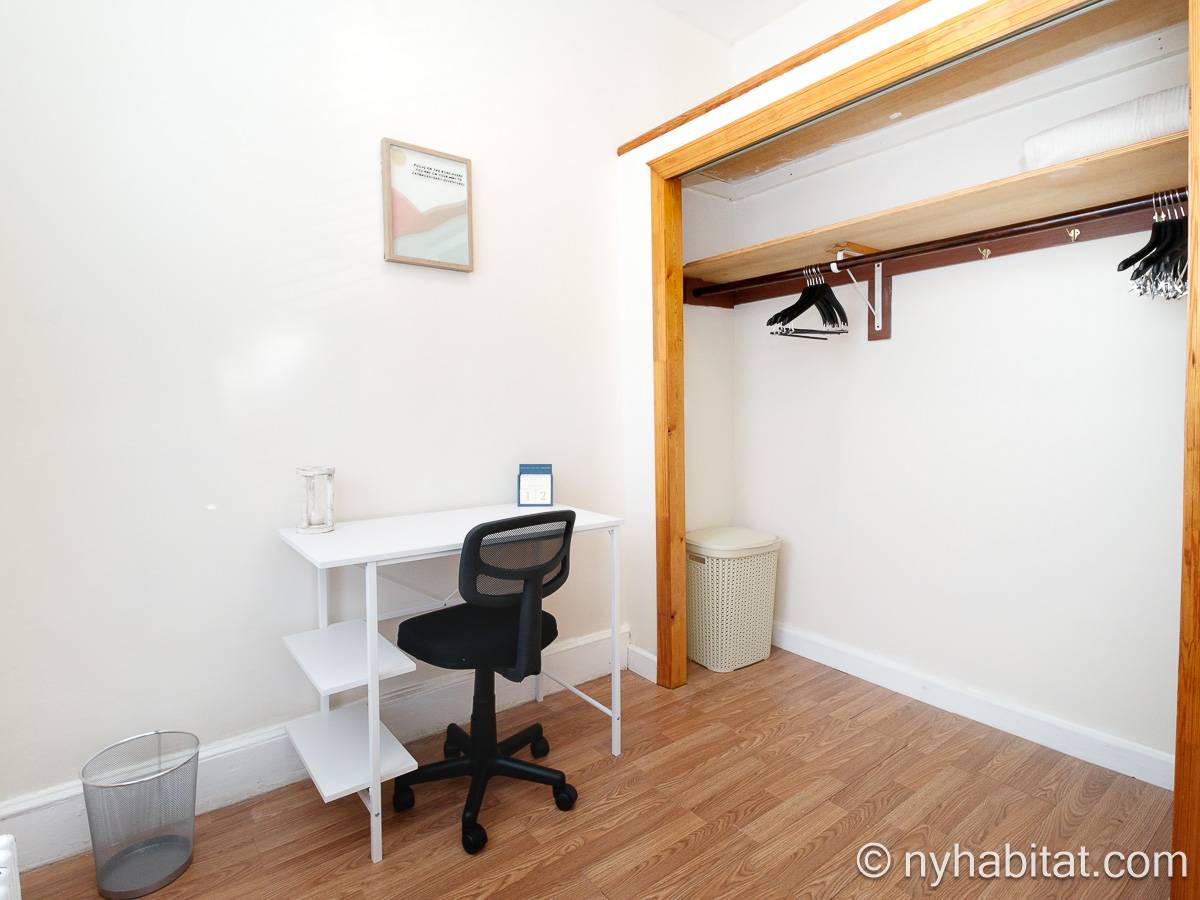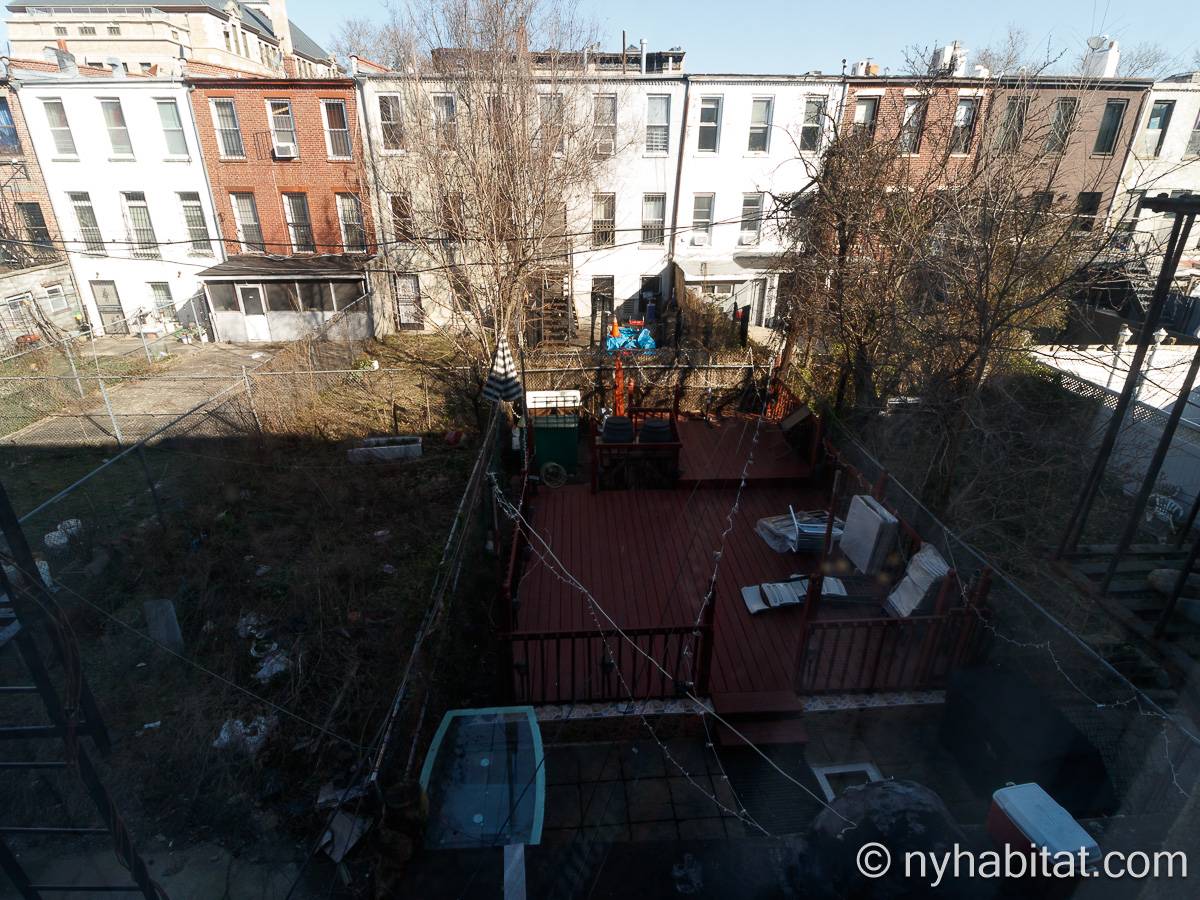 Diese Mietwohnung mit einer Wohnfläche von 70 m² befindet sich im zweiten Stock (entspricht in Europa dem ersten Stock) eines dreistöckigen Reihenhauses, das nahe der Kreuzung Marion Street und Saratoga Avenue liegt. Die Wohnung ist mit eine Waschmaschine und einen Trockner und Parkettböden ausgelegt. Das Gebäude hat keinen Aufzug.