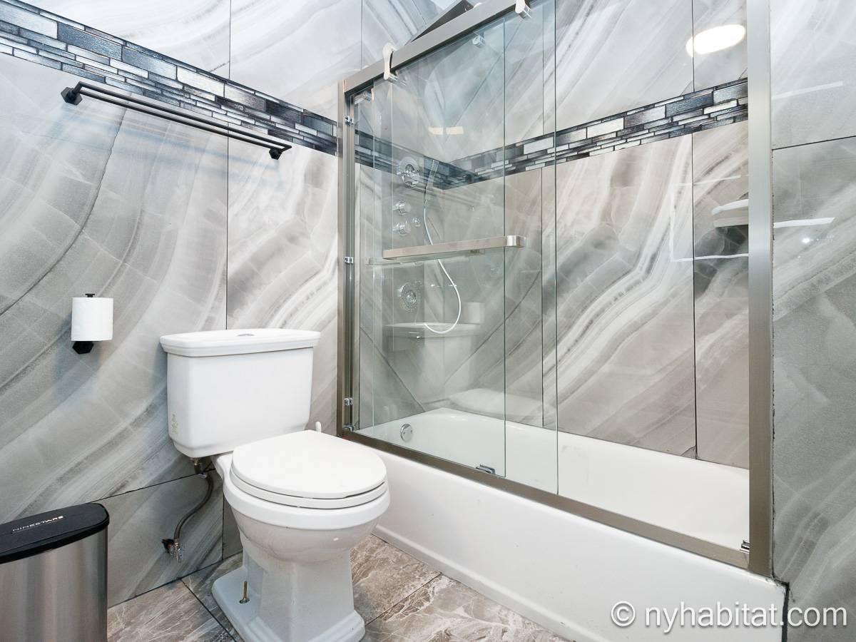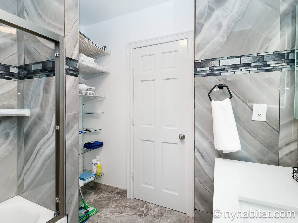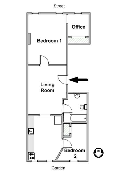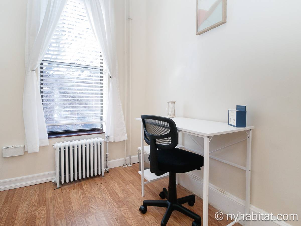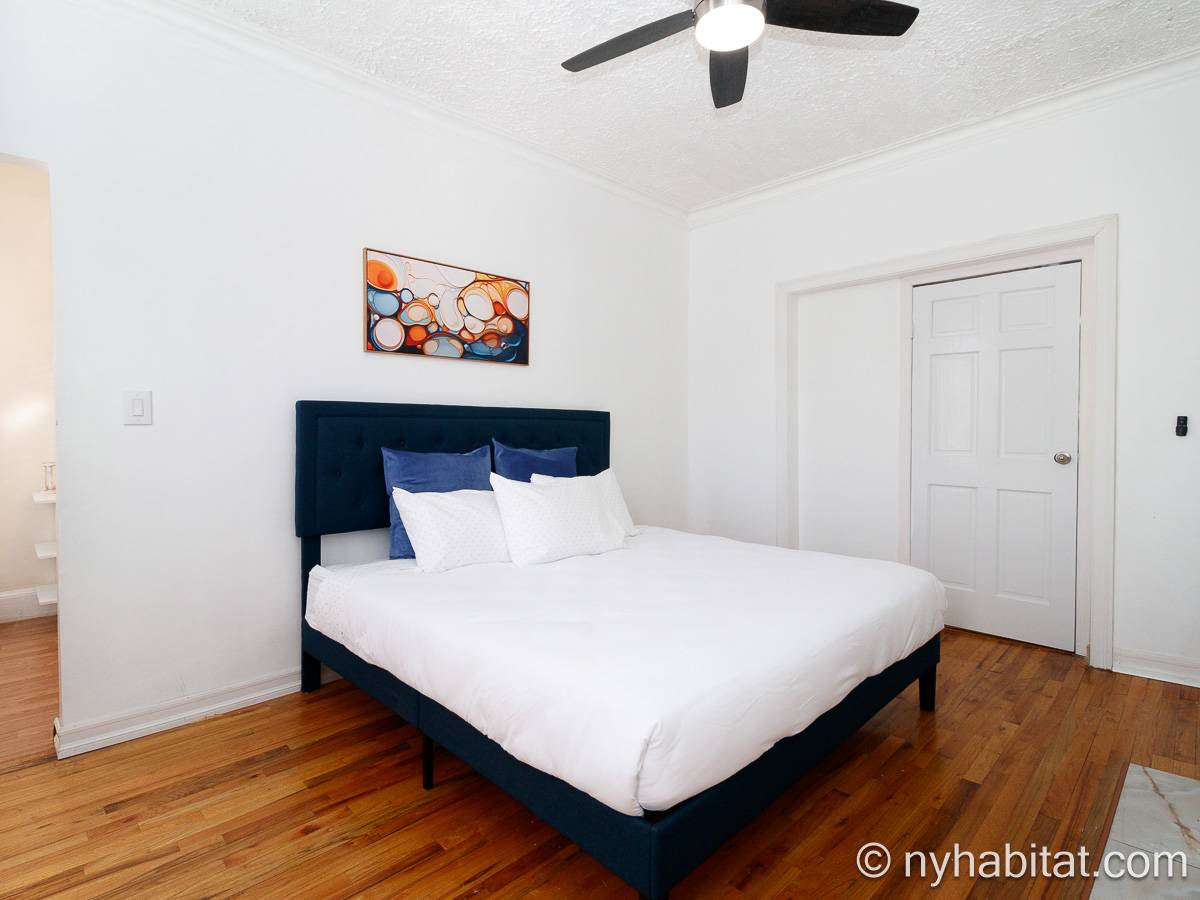 Diese Mietwohnung mit einer Wohnfläche von 70 m² befindet sich im zweiten Stock (entspricht in Europa dem ersten Stock) eines dreistöckigen Reihenhauses, das nahe der Kreuzung Marion Street und Saratoga Avenue liegt. Die Wohnung ist mit eine Waschmaschine und einen Trockner und Parkettböden ausgelegt. Das Gebäude hat keinen Aufzug.
