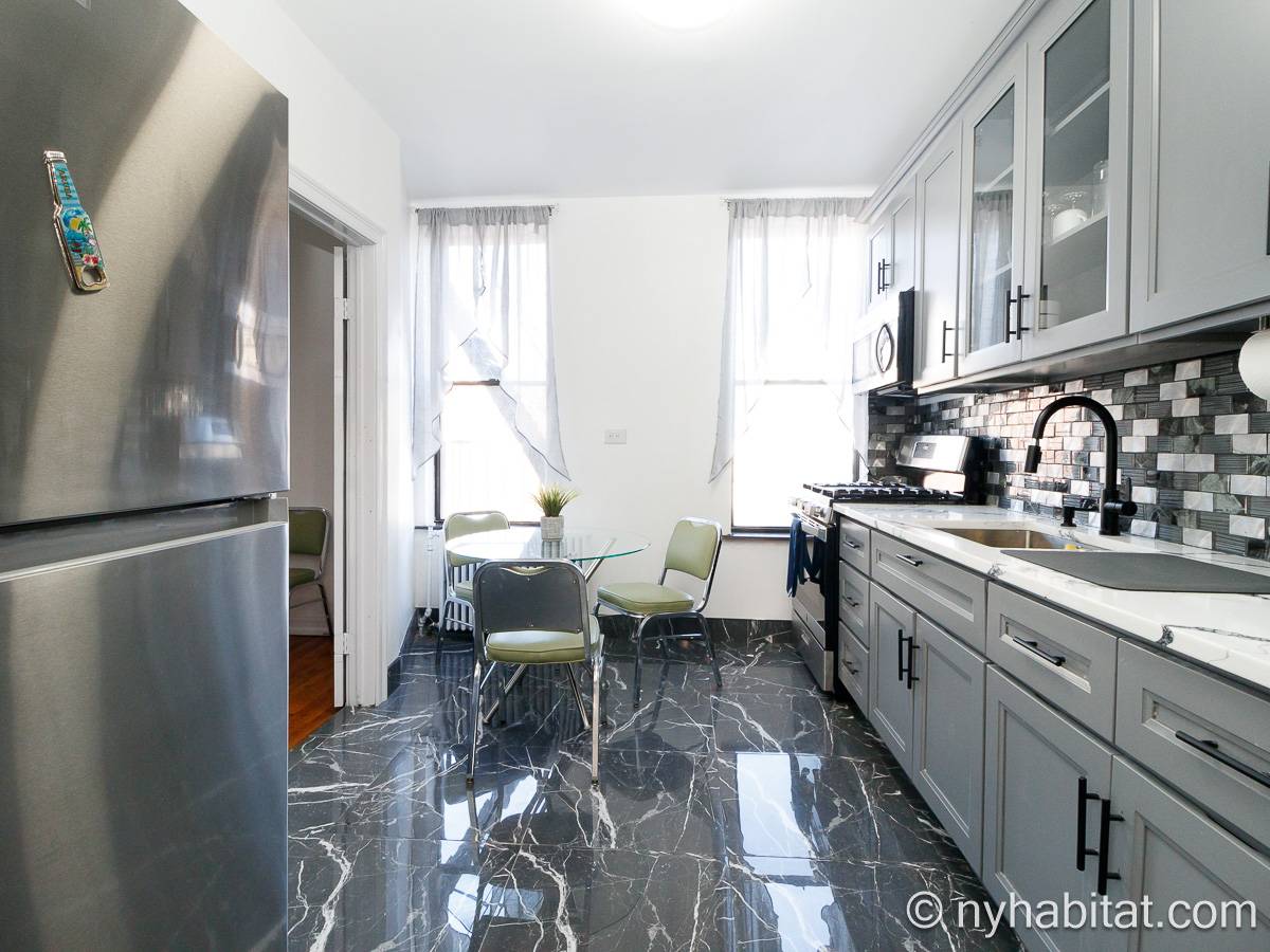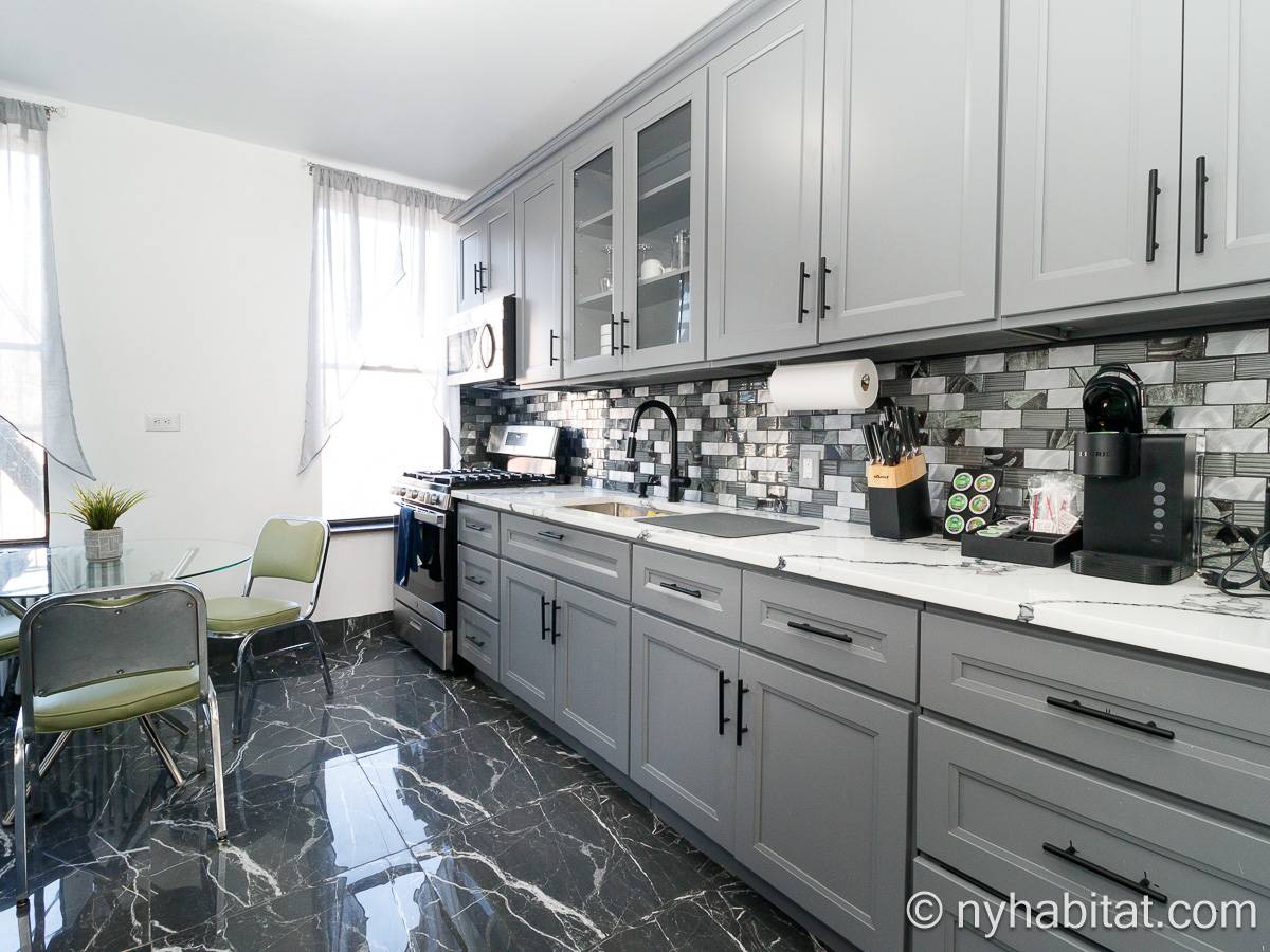 Sehen Sie sich diese möblierte Drei-Zimmer-Wohnung mit einem Badezimmer im Stadtteil Bedford-Stuyvesant in Brooklyn an.