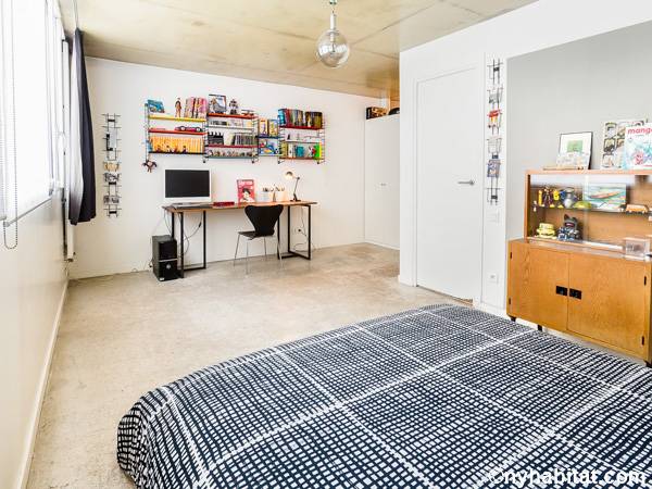 Im zweiten Stock werden Sie das 23 m² große Hauptschlafzimmer mit einem Queen-Bett, einem Schreibtisch und 4 x 2,4 Meter großen von Wand zu Wand reichenden Schränken finden. Das Badezimmer ist mit einer Badewanne, einem Waschbecken und einer Duschkabine ausgestattet. Angrenzend an das Hauptschlafzimmer erhellt ein großes Fenster zum Hof ein weiteres Schlafzimmer, in dem unter anderem ein Einzelbett steht und das ein eigenes Badezimmer hat, somit also gut für ein Kind geeignet ist.