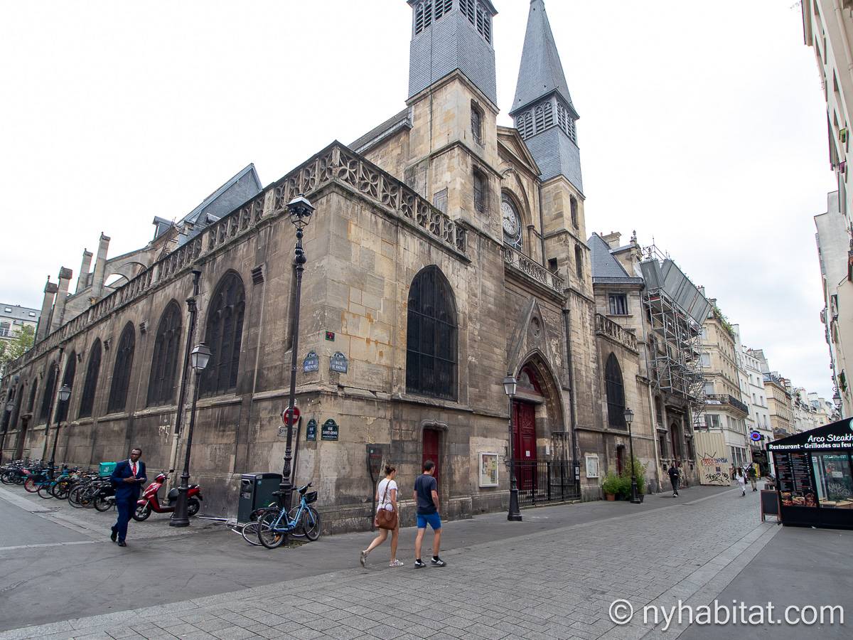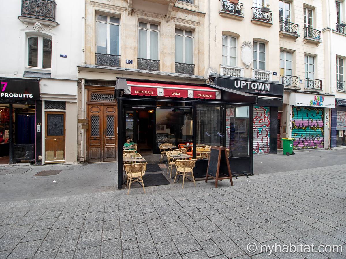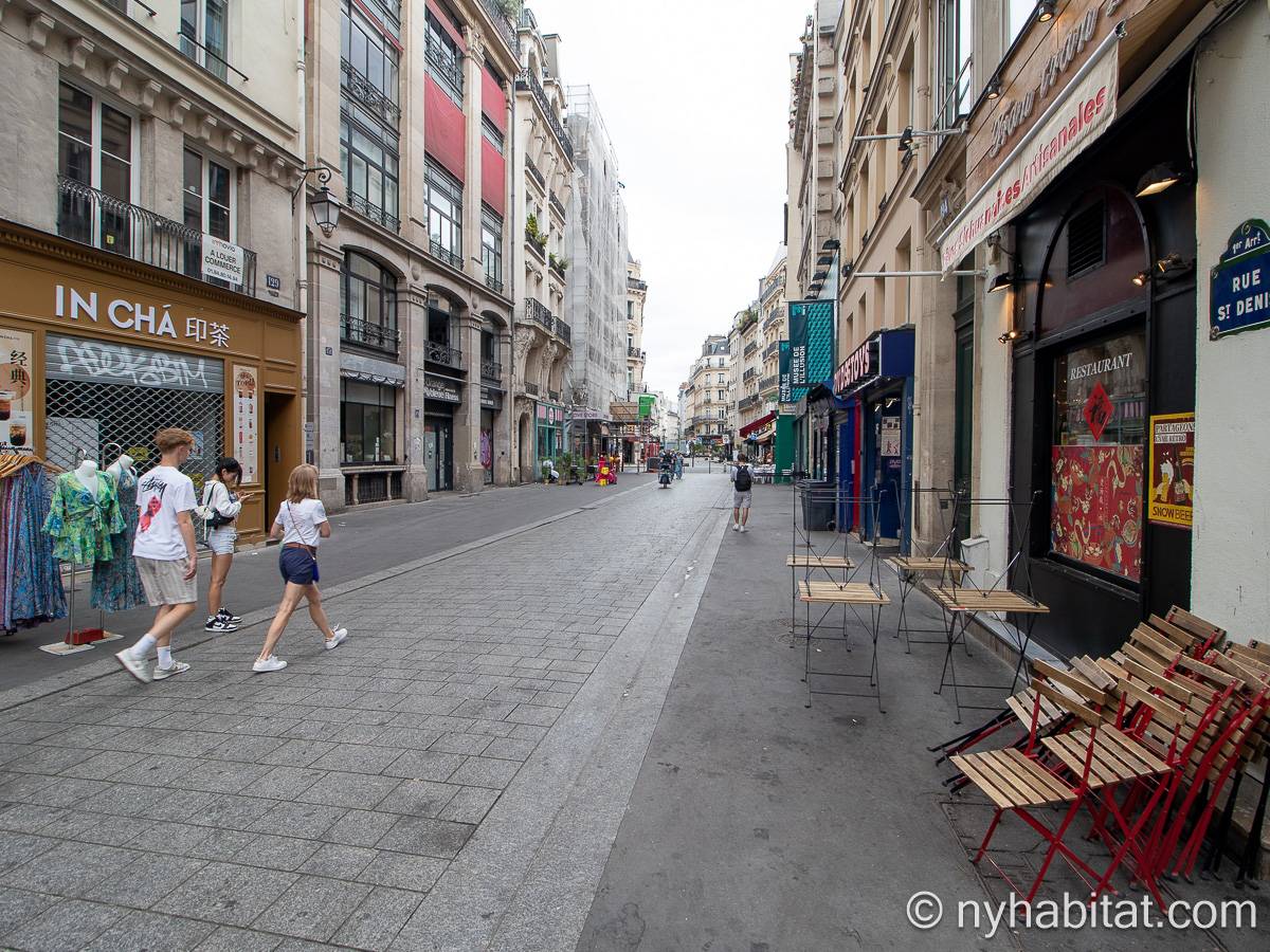 In der Fußgängerstraße Rue du Cygne zwischen dem Boulevard de Sebastopol und der Rue Pierre Lescot befindet sich diese Wohnung in einer idealen Lage sehr nah an mehreren sehenswerten Orten, wie zum Beispiel das Centre Georges Pompidou und das Rathaus von Paris, die nur etwa 480 Meter entfernt sind. Andere nahegelegene Attraktionen, die Sie gesehen haben müssen, wie der Louvre und die Notre Dame Kathedrale, liegen beide innerhalb eines Umkreises von 1,6 Kilometern von der Wohnung. Les Halles grenzt an die authentische Pariser Gegend Montorgueil mit ihren vielen Anlieger- und Geschäftsstraßen. Es ist ein toller Ort, um Lebensmittel einzukaufen, da er voll von Feinschmecker- und Tante-Emma-Läden ist. Die Rue Montorgueil (320 Meter) ist eine kopfsteingepflasterte Straße mit Designerboutiquen, außergewöhnlichen Restaurants und hübschen Cafés. Sie werden die Supermarktkette Monoprix in der Gegend Châtelet finden, die ebenfalls am rechten Ufer der Seine liegt. Die nächstgelegene U-Bahnstation ist Étienne Marcel an der Linie 4, die nur knapp 100 Meter entfernt ist. Zusätzlich ist der große U-Bahn und RER Knotenpunkt Châtelet-Les-Halles (an den Linien 1, 4, 7, 11, 14, B, C und D) nur 320 Meter weit weg.