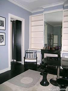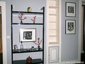 Wegen der langen Fenster (fast vom Boden bis zur Decke), bekommt das Wohnzimmer viel Tageslicht. Es ist mit eleganten Akzenten wie einem Parkettfußboden, Wandverzierungen und einem Kamin ausgestattet. Der Raum ist komfortabel, elegant und dekoriert mit ansprechenden Malereien und Möbeln in Grautönen. Nehmen Sie die zahlreich eingebauten Bücherschränke und –regale wahr, um Ihre persönlichen Gegenstände unterzubringen und der Wohnung Ihre persönliche Note dadurch zu verleihen, dass Sie Ihre eigenen Dekoartikel hinzufügen. Sie werden sich wie zuhause fühlen! Die separate Küche ist ausgestattet mit allen wesentlichen Geräten und Geschirr, das sie zur Zubereitung Ihrer Mahlzeiten brauchen sollten. Praktischerweise gibt es darüber hinaus eine Geschirrspülmaschine, sodass Sie sich danach um das Abwaschen keine Sorgen machen brauchen! Die Wohnung verfügt noch dazu über eine Waschmaschine für Ihren Waschbedarf. Das Schlafzimmer ist mit einem Doppelbett eingerichtet und das Badezimmer ist mit einer Badewanne mit zwei Duschköpfen, sowie auch einem Handtuchtrockner ausgestattet; die Toilette ist separat. Neben den Ausstattungsvorzügen, ist die Lage dieser 2-Zimmer-Wohnung definitiv ihr größter Pluspunkt!