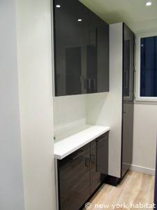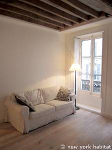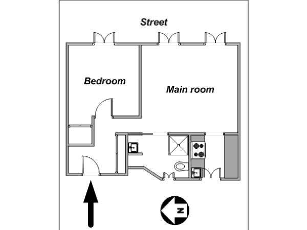 Genießen Sie die geschäftigen Straßen, das aufregende Nachtleben und alles andere in dieser 2-Zimmer-Wohnung in der Nähe des Place de la République im 11. Arrondissement in Paris. Diese möblierte Wohnung liegt am Boulevard du Temple direkt am Place de la République im Erdgeschoss eines vierstöckigen Gebäudes ohne Fahrstuhl aus dem 18. Jahrhundert. Es gibt ein Digicode-Security-System, ein Fenster Richtung Osten zur Straße und eines zum Hinterhof.