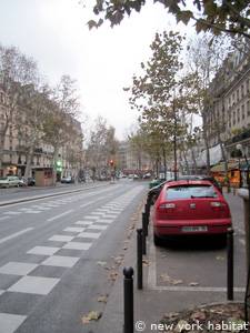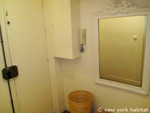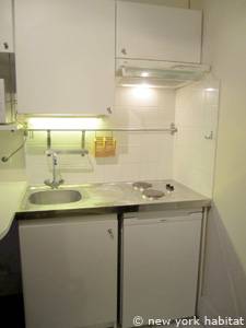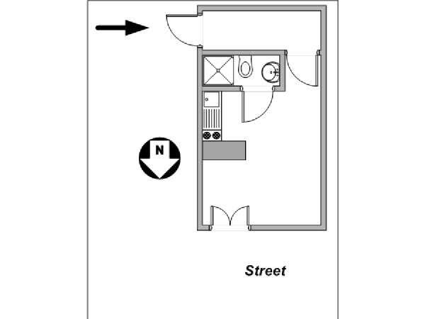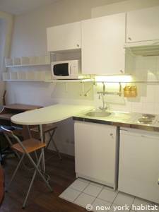 Diese Pariser Studiowohnung ist mit einer zeitgenössischen Ausstattung eingerichtet und bietet große französische Fenster, um natürliches Licht einzulassen. Der Wohnbereich der Wohnung ist mit einem Esstisch, einem Fernseher und einer Doppelschlafcouch möbliert. Das Badezimmer bietet eine Dusche, ein WC und ein Waschbecken mit Waschtisch. Die Kochnische in der Wohnung ist mit einem Kühlschrank, einer Herdplatte sowie einer Mikrowelle ausgestattet.