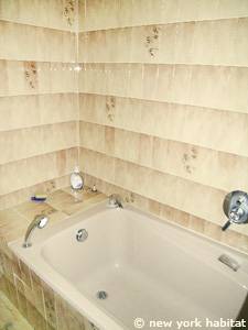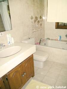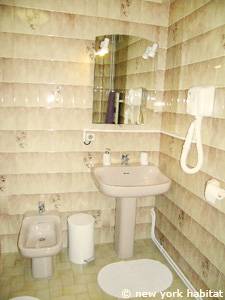 - Das Jasmin-Zimmer (Schlafzimmer 2) befindet sich auf der Rückseite des Hauses, im westlichen Teil der Pension. Dieses Zimmer ist mit einem Doppelbett und einem Klavier eingerichtet. Es gibt einen Minikühlschrank, einen großen Schrank und zwei Fenster. Über dem Hauptraum dieses Schlafzimmers befindet sich ein kleines Zwischengeschoss. Zusätzlich zum Hauptbett verfügt dieses Schlafzimmer über ein Futonbett in Doppelgröße und ein Einzelbett. Das eigene Badezimmer bietet eine Duschkabine sowie ein Waschbecken mit Spiegel.
