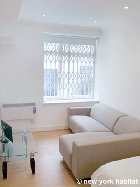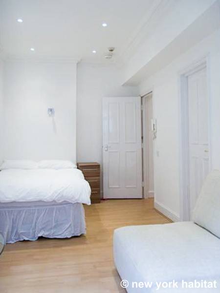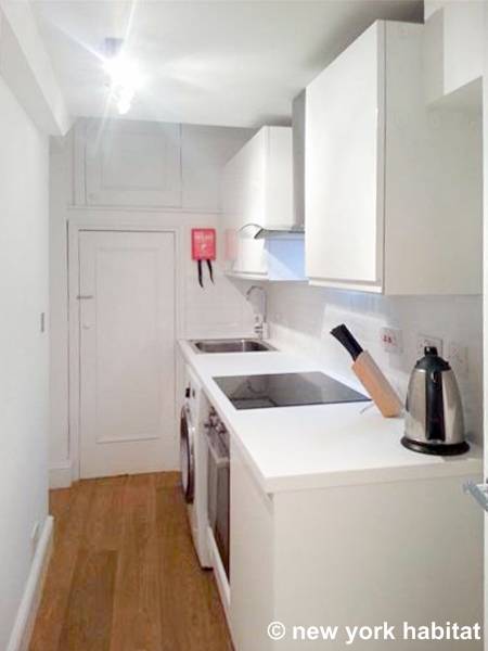 Situé sur Harrington Gardens entre Collingham Road et Gloucester Road, ce studio T1 rénové, doté d'un parquet massif et de hauts plafonds, se trouve au rez-de-chaussée inférieur d'un immeuble historique sans ascenseur du XXe siècle équipé d'un système de sécurité. L'appartement offre les équipements modernes nécessaires à un séjour confortable, notamment un lave-linge, une télévision à écran plat et un lit double. Dans l'entrée se trouve une cuisine en Corian équipée d'un four, d'un réfrigérateur et d'un congélateur. Parmi les autres points forts de cet appartement figurent une grande salle de bains, un très bon éclairage dans chaque pièce et une table basse en verre.