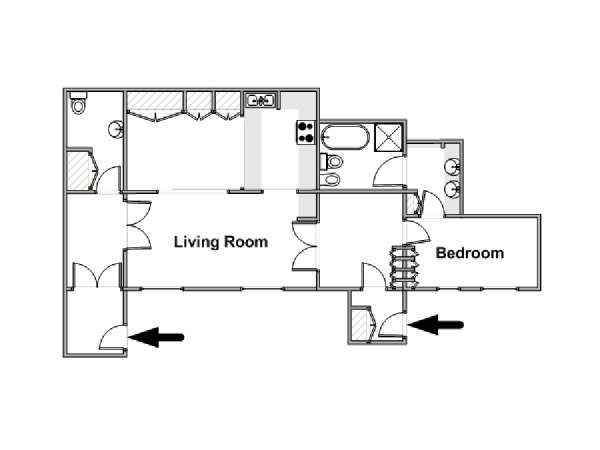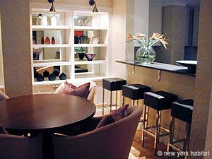 Chaque appartement T2 est situé au rez-de-chaussée, dispose d'un lit Queen size, et vous offre le luxe d'avoir deux WC : l'un dans une salle de bain complète (avec baignoire et douche) et l'autre dans une pièce séparée. La cuisine est entièrement équipée pour la préparation des repas, et possède un four, un réfrigérateur, un congélateur, un grille-pain ainsi que plusieurs autres ustensiles, comprenant un service Villeroy & Boch en porcelaine et en cristal. De plus, l'immeuble dispose d'un concierge, d'un service de portage et de services de sécurité 24h/24.