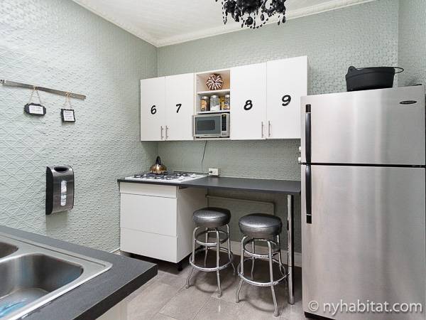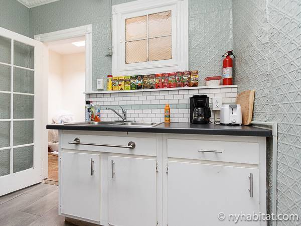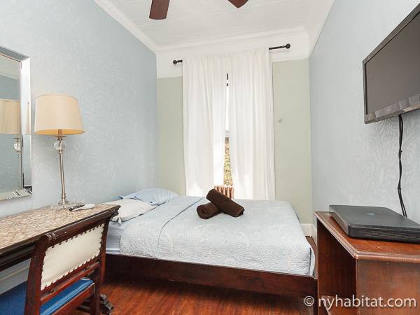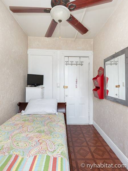 Cette petite chambre à louer en bed and breakfast se trouve dans un immeuble traditionnel en grès rouge, une brownstone, de Harlem comprenant sept chambres (appartement T8). Elle est parfaite pour les touristes qui souhaitent passer leur temps à découvrir New York plutôt que de rester à l'intérieur ! La chambre est au dernier étage d'un immeuble de 4 étages sans ascenseur (l'équivalent du 3ème étage en Europe), lui permettant de bénéficier de la lumière naturelle, qui n'est pas cachée par les autres bâtiments.