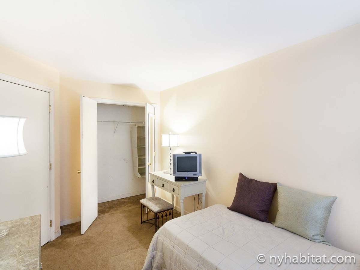 La chambre à louer (Chambre #1 sur le plan de l'étage et les photos) de l’appartement duplex T4 a un lit jumeau gigogne convertible en lit deux places. Dans votre chambre, vous trouverez aussi un placard de rangement, une télé écran plat avec le câble et un climatiseur pour les mois d'été.