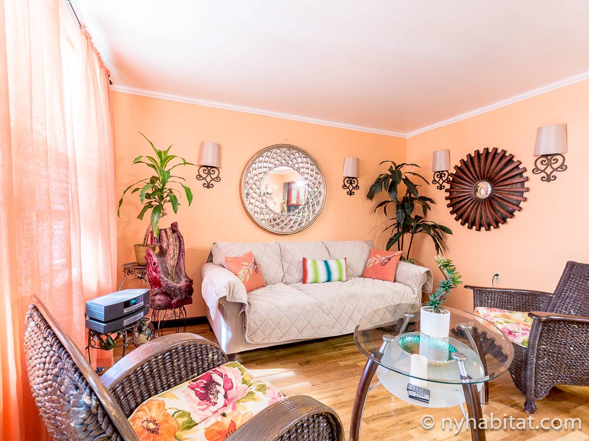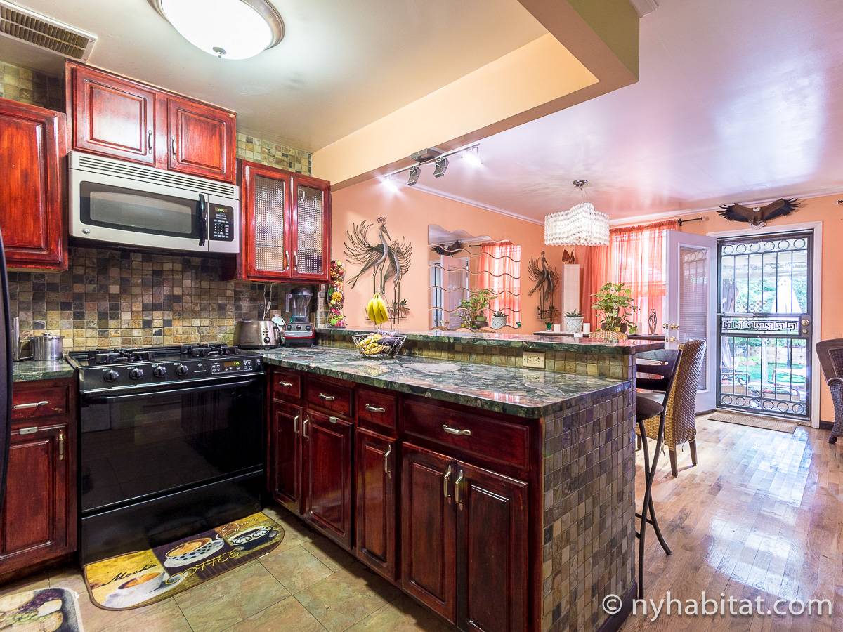 Très bon appartement où séjourner avec un bon rapport qualité-prix, favorable au client. Vous ne trouverez rien d'aussi bien et d'aussi bon marché sur New York. Vous avez plus d'intimité en étant à l'étage et la salle de bain se trouve juste à côté. Il s'agit plus d'une maison que d'un appartement et le jardin est un plus. La cuisine est un peu petite, mais bien équipée. |