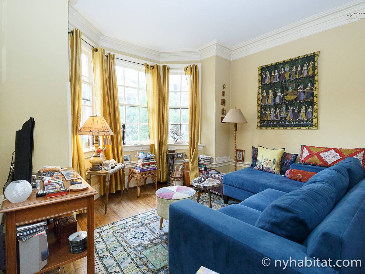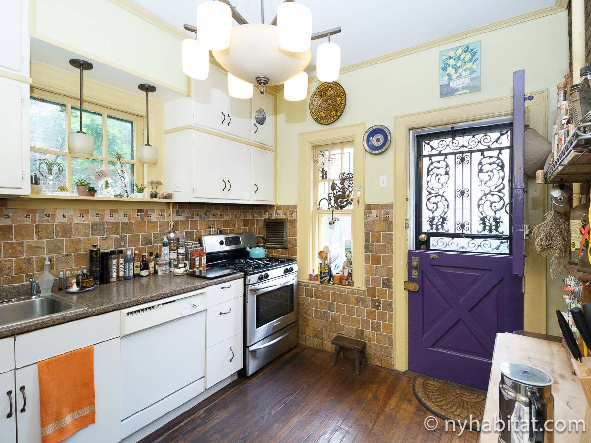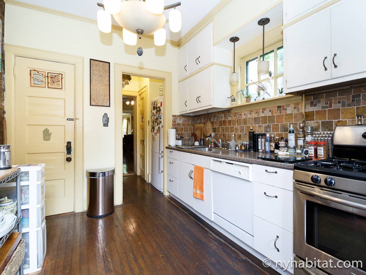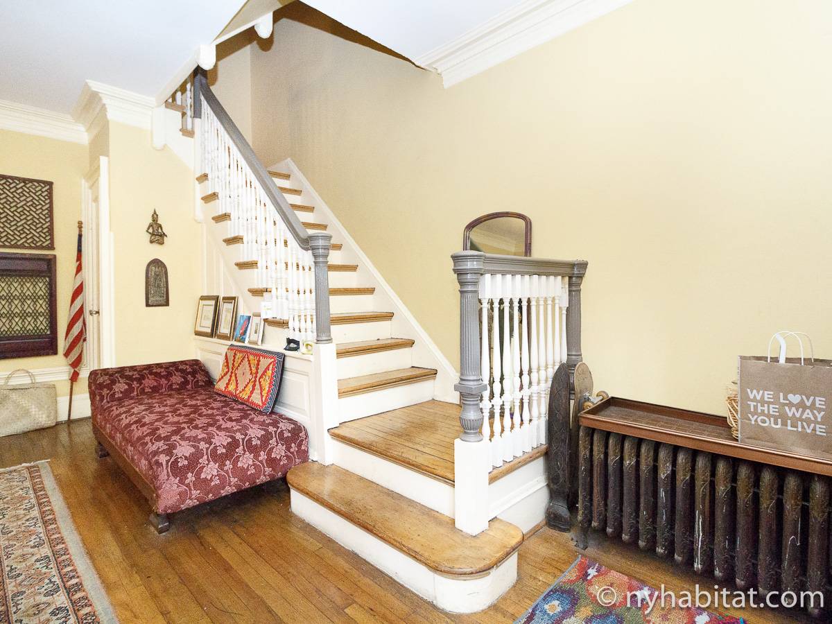 Découvrez New York sous un nouveau jour – du point de vue de Brooklyn ! – dans cet appartement T4 en colocation. La maison mitoyenne, d’architecture géorgienne, se trouve dans le quartier de Flatbush, à Brooklyn. Prospect Park est juste au bout de la rue et cet appartement se situe dans une impasse à l’angle de Albemarle Terrace et East 21st Street, dans un bâtiment emblématique.