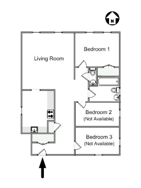 Pièces de l'appartement non disponibles pour cette location : chambre #2, chambre #3, salle de bain #2