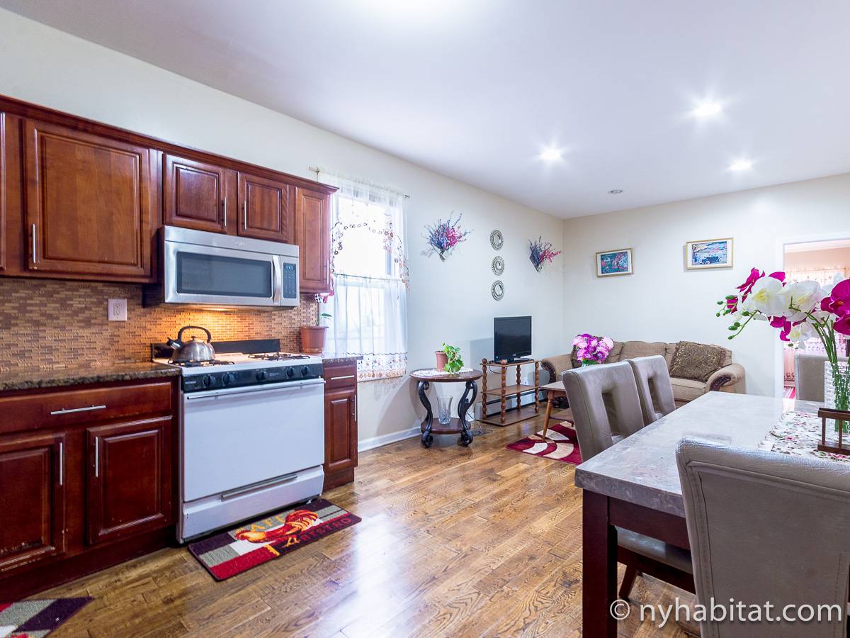 Le multiculturalisme est au premier plan dans le quartier de Flatbush à Brooklyn, créant une atmosphère accueillante et animée par diverses cultures. Cet appartement T5 entièrement meublé en colocation offre assez d’espace à tout le monde pour vivre une expérience authentique de New York. Vous trouverez cette colocation au 1er étage (équivalent du rez-de-chaussée en Europe) d’une maison de deux étages au coin d’East 40 Street et Linden Boulevard. Tandis que la chambre à louer est votre espace privé, les pièces en commun comme le salon, la cuisine et la salle de bain sont partagées avec des colocataires.