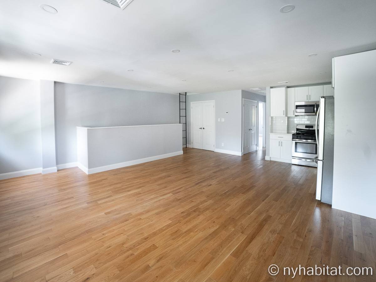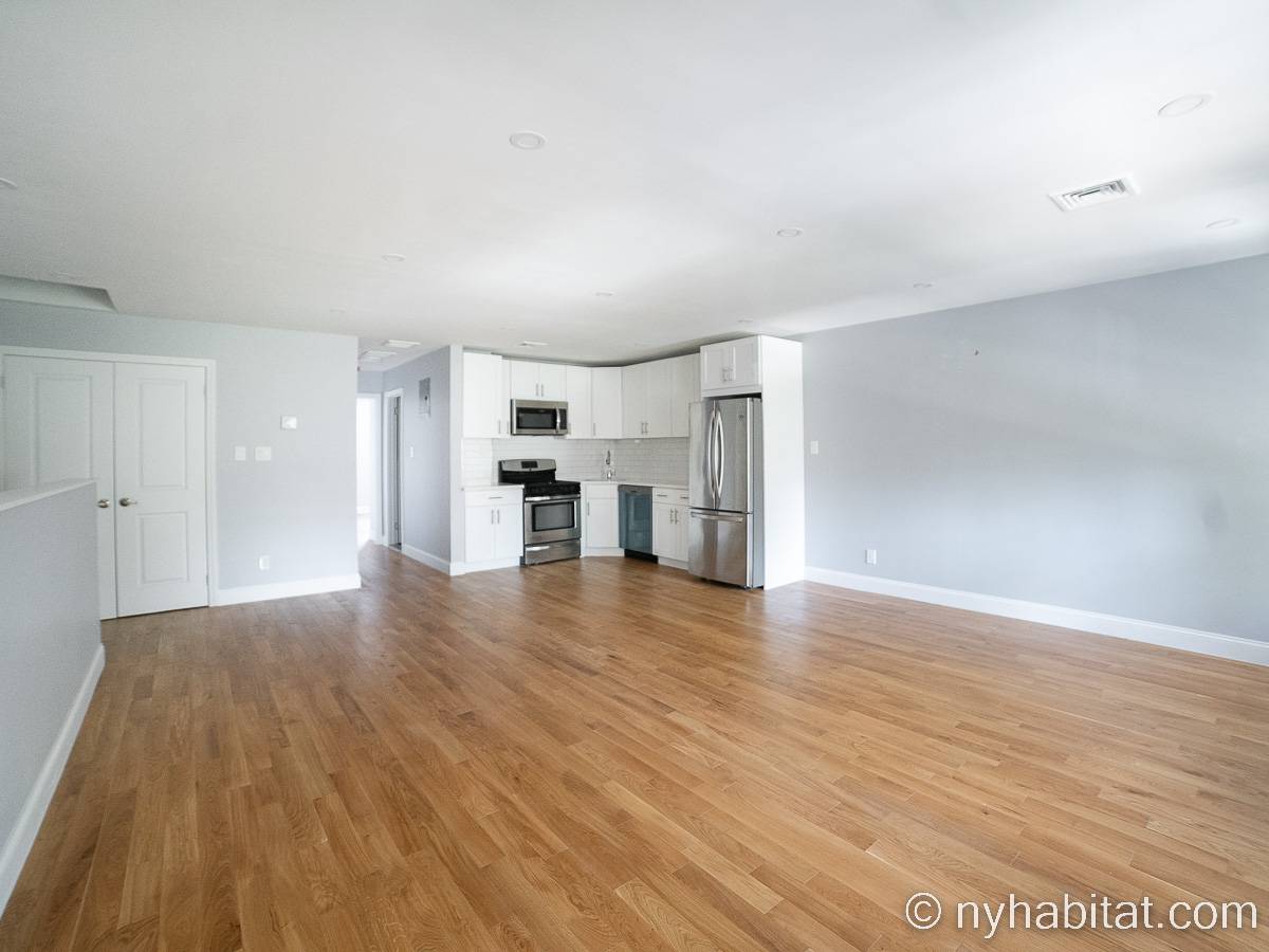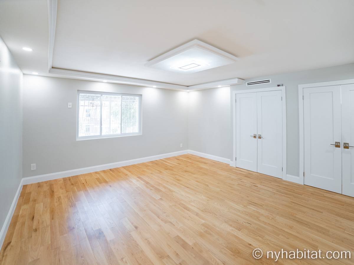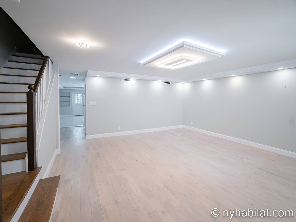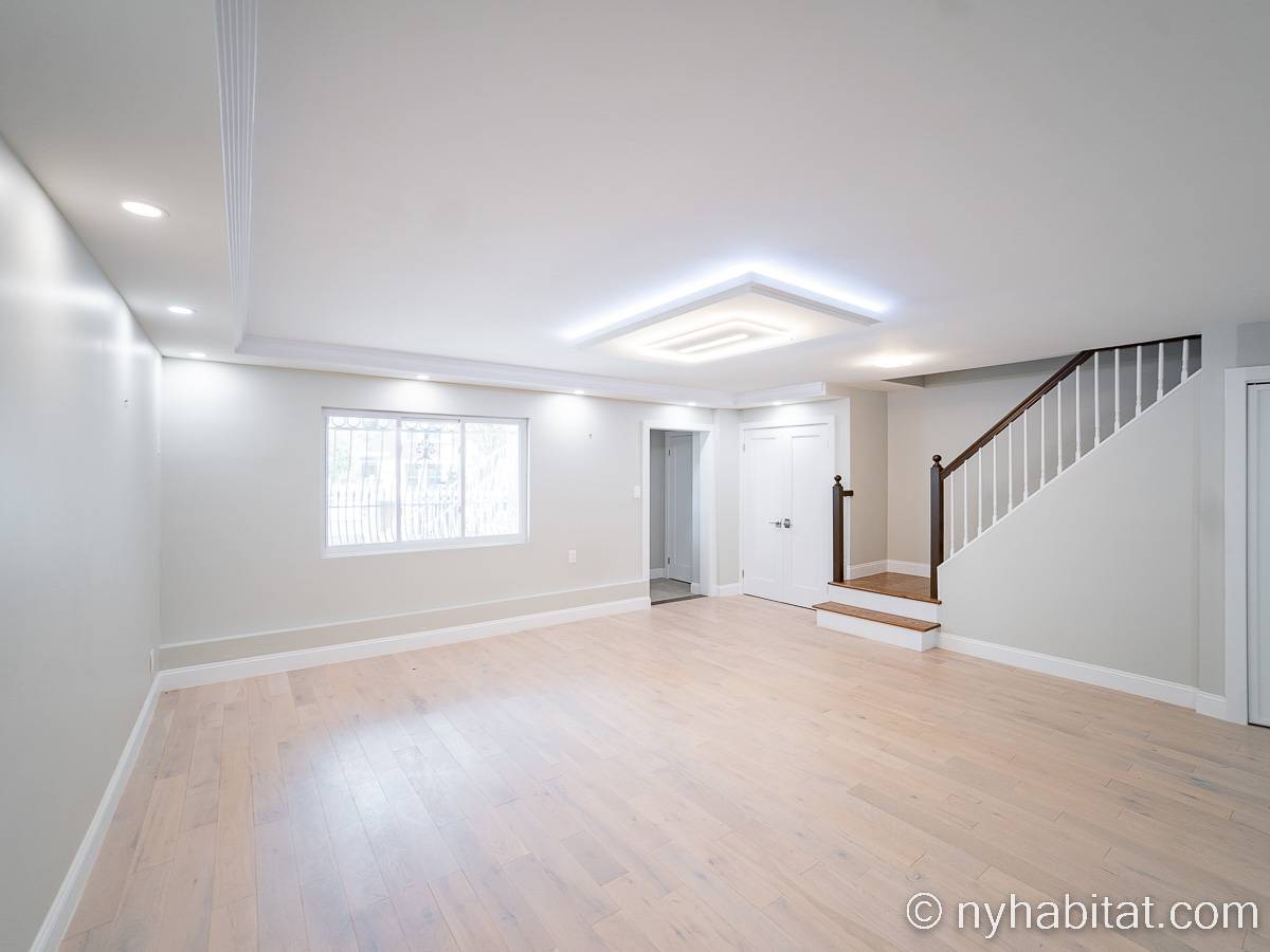 Voici un appartement T4 en duplex avec 3 salles de bain situé dans le quartier de Crown Heights à Brooklyn. Située au 1er étage (équivalent du rez-de-chaussée en Europe) d'un immeuble de 2 étages, cette colocation à New York dispose d'un séjour spacieux, de parquet et de l'air conditionné.