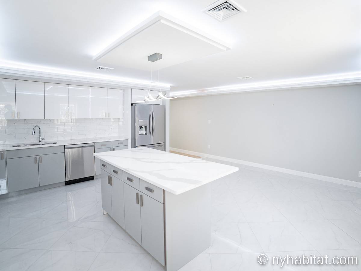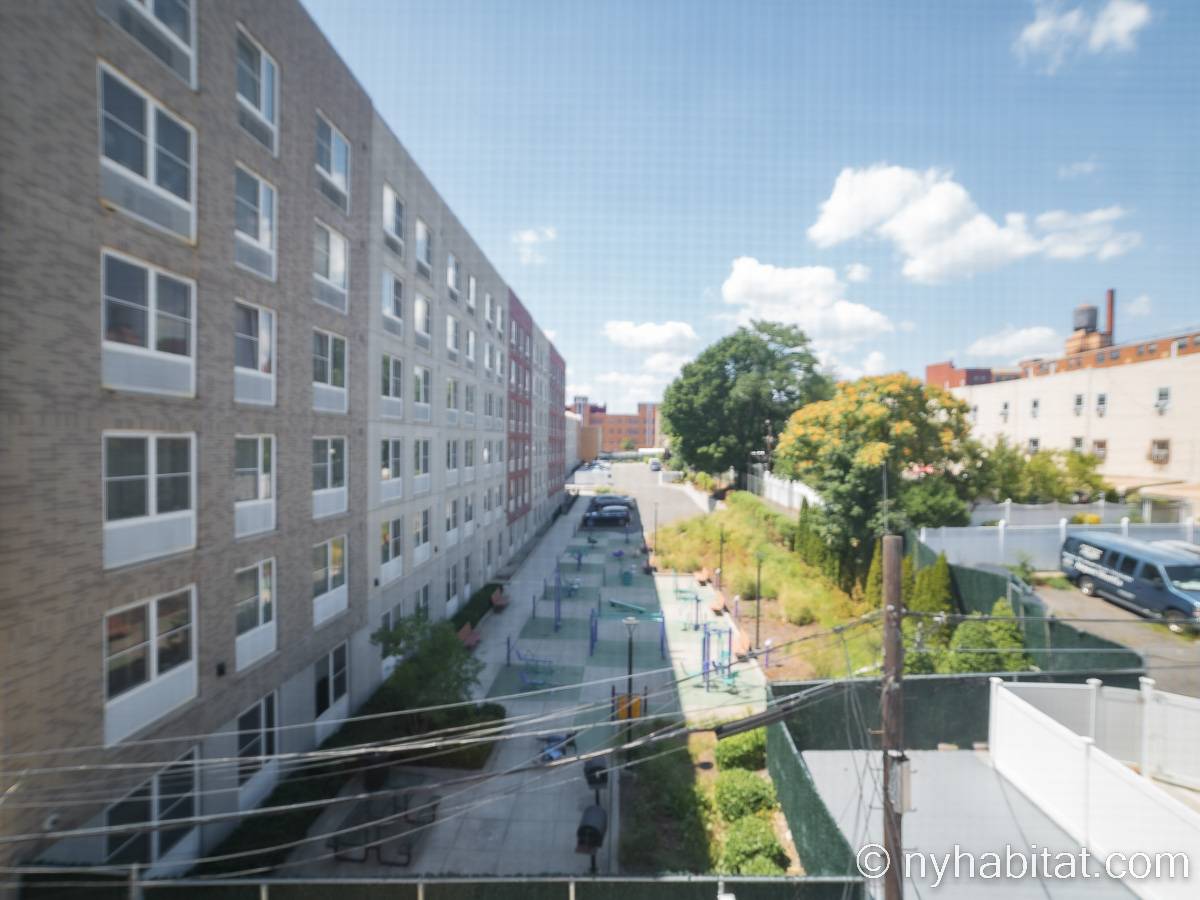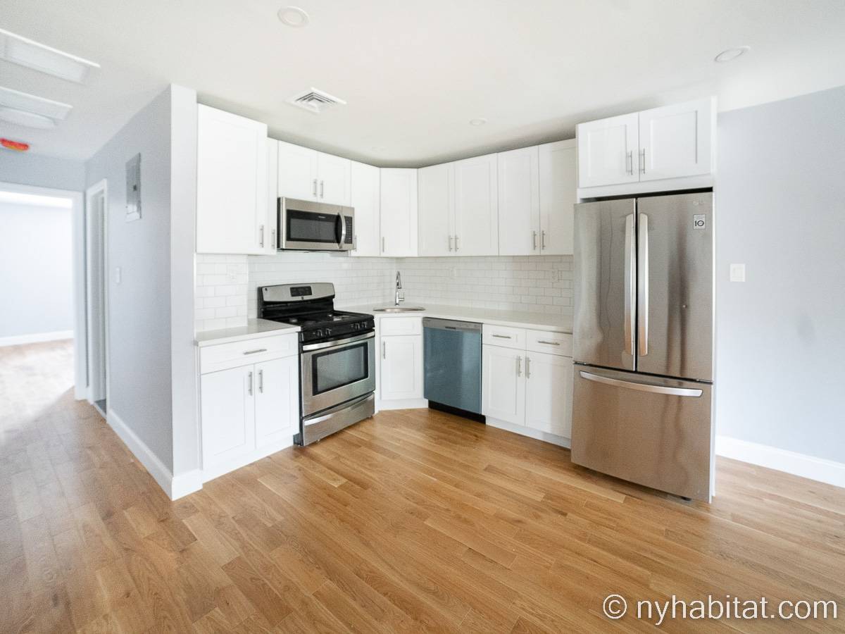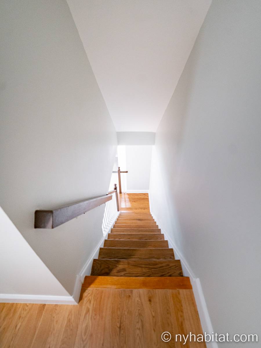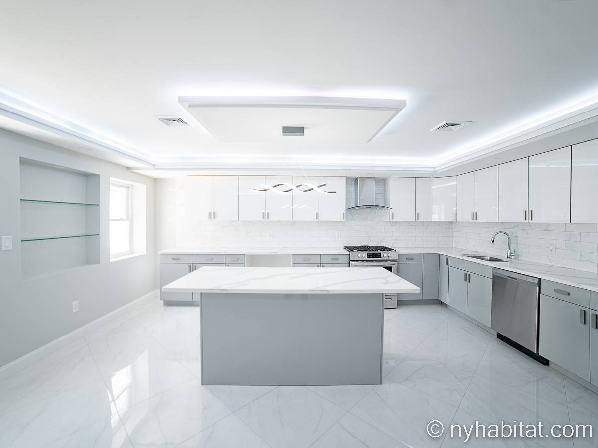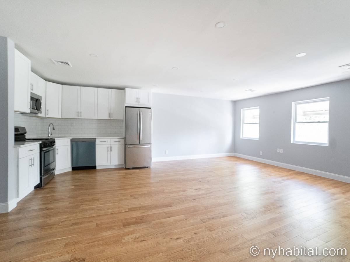 Voici un appartement T4 en duplex avec 3 salles de bain situé dans le quartier de Crown Heights à Brooklyn. Située au 1er étage (équivalent du rez-de-chaussée en Europe) d'un immeuble de 2 étages, cette colocation à New York dispose d'un séjour spacieux, de parquet et de l'air conditionné.