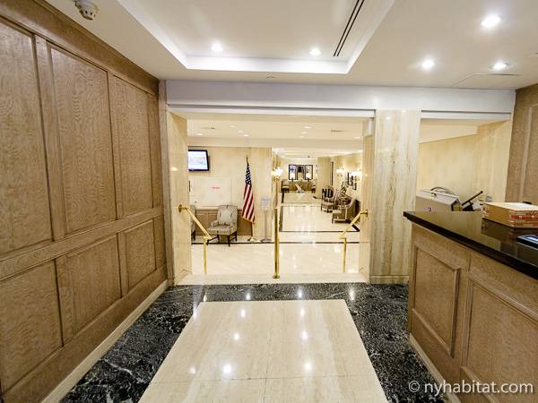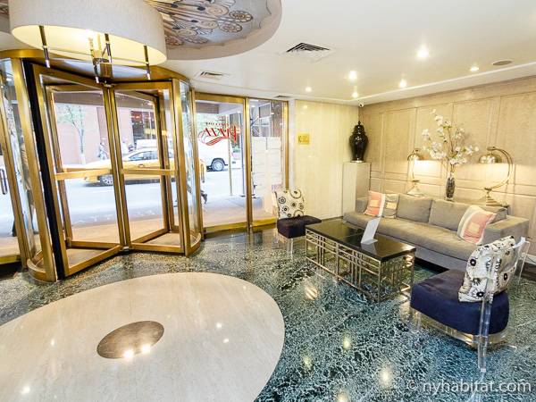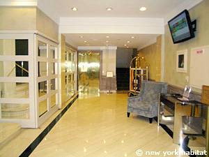 Cette location meublée se situe au 10e étage (l’équivalent du 9e étage en Europe) d’un grand immeuble luxueux de 21 étages avec ascenseur. Une buanderie ainsi qu’une salle de gym sont à disposition sur demande. Un portier est également présent à toute heure dans le hall en marbre pour assurer votre confort.