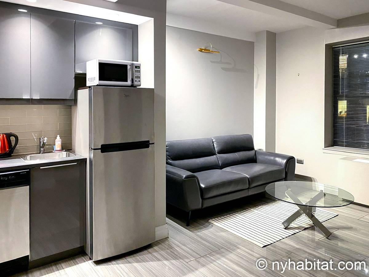 Cet appartement T2 entièrement meublé se situe dans le quartier de Midtown West/Times Square à Manhattan. Cet appartement idéalement situé dans New York est doté de moquette, de grandes fenêtres et d’un environnement contemporain.