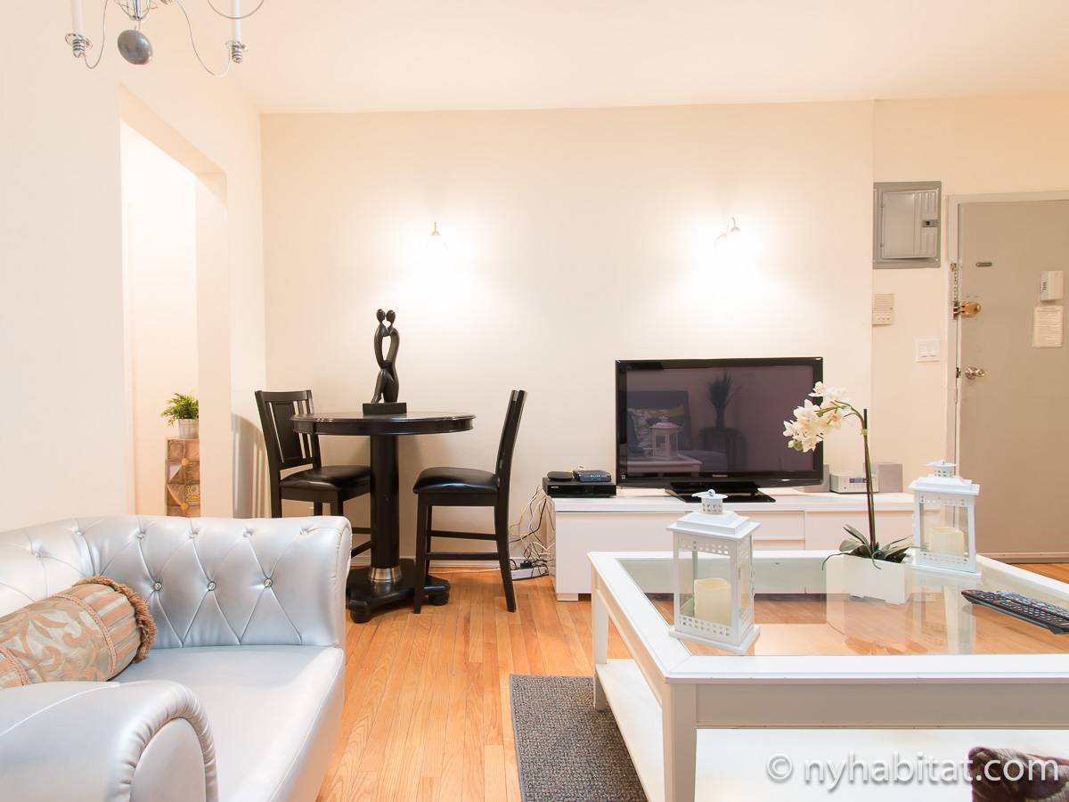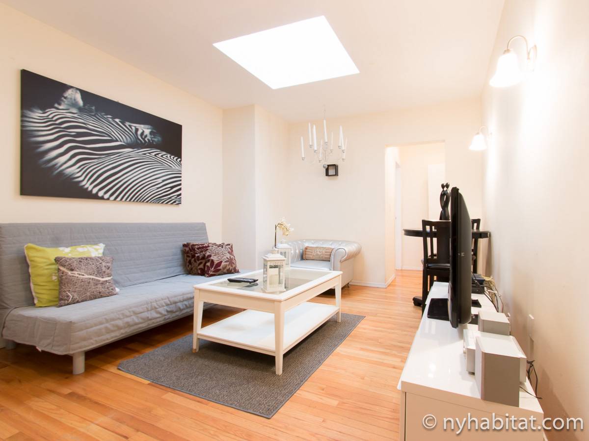 Entièrement meublé et prêt pour votre prochaine visite à New York, cet élégant appartement T3 situé sur la 12ème rue est et la 2nde avenue du très apprécié quartier de l’East Village de New York, se trouve au cinquième étage (équivalent du quatrième étage en Europe) d’un Brownstone avec ascenseur. Vous y bénéficierez du confort et du privilège d’une salle de sport sur place réservée à l’usage des résidents, et d’une laverie commune. L’immeuble est équipé d’un système d’interphone pour un accès sécurisé.