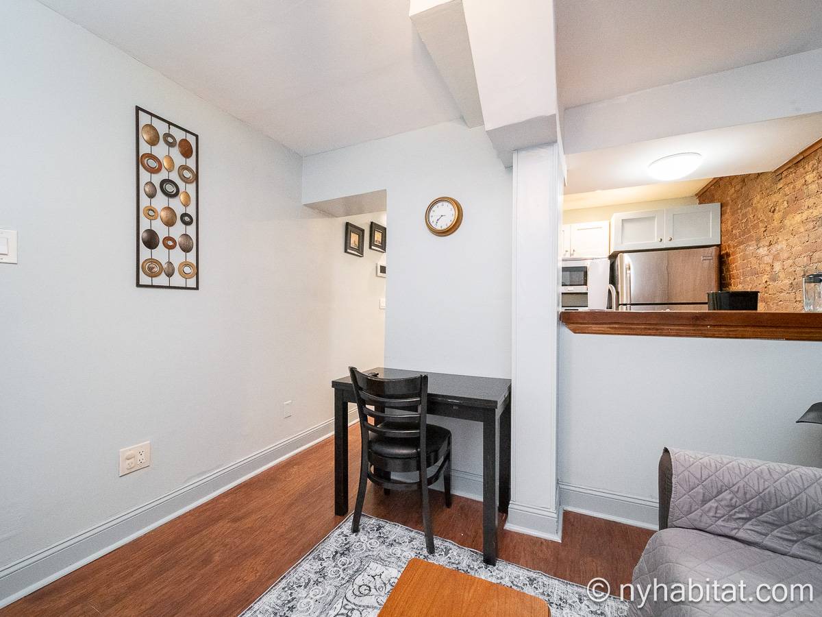 Cette location meublée dispose de parquet et de murs en briques apparentes. Le salon est équipé d’un canapé lit double, d'une télévision murale et d'une petite table à manger pour deux. La cuisine ouverte est équipée de tous les ustensiles de cuisine et de la vaisselle nécessaires. Profitez des appareils électroménagers en acier inoxydable, du lave-vaisselle, de la cafetière et du grille-pain. À l’arrière, une porte donne sur le jardin et sa table à manger. Dans la chambre, vous trouverez un lit double et un placard pour ranger vos affaires. Elle comprend une TV ainsi qu’un ventilateur de plafond pour maintenir la pièce à la bonne température. Une cheminée ajoute du charme à la pièce.