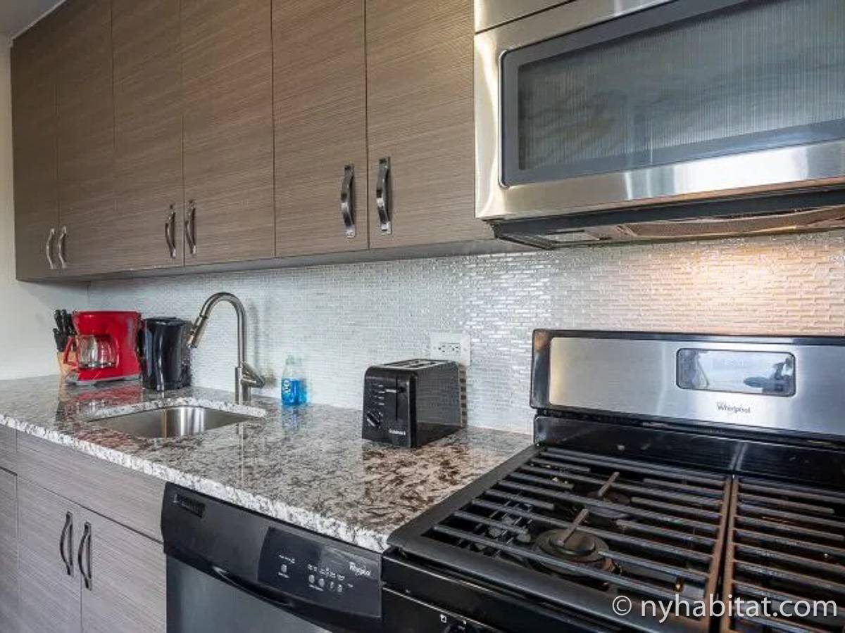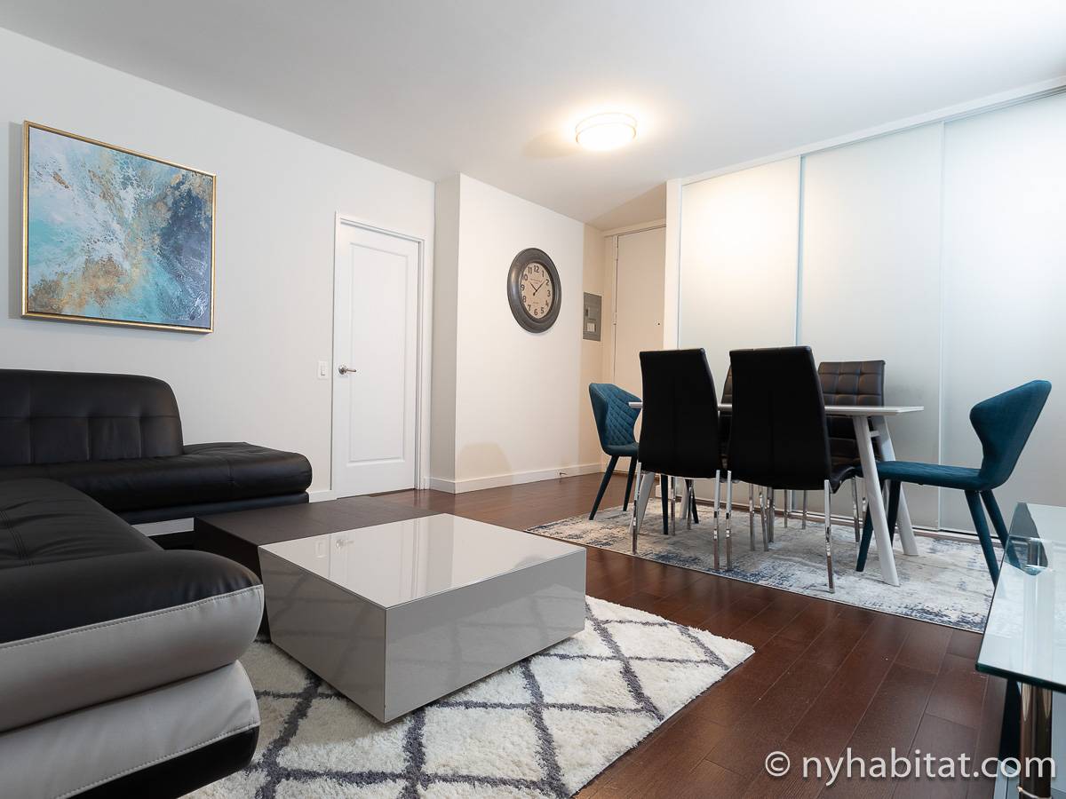 Cet appartement peut être décrit comme clair, moderne et propre. La lumière est au rendez-vous grâce aux baies vitrées et à un balcon qui vous donneront une vue époustouflante de New York. Le séjour vous permettra de vous divertir grâce à des canapés, des chaises et une télé équipée du câble à votre disposition.
