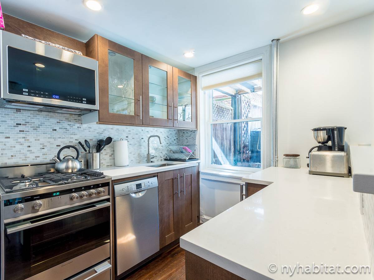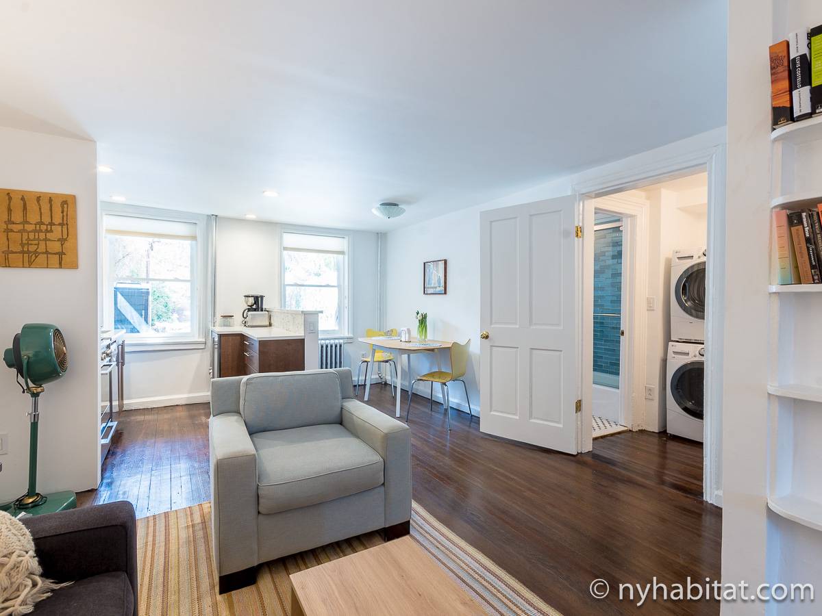 Vivez comme un véritable habitant de Brooklyn en louant cet appartement T2 meublé avec salle de bain dans le magnifique quartier de Fort Greene à Brooklyn. Situé à proximité de South Portland Avenue & DeKalb Avenue, au rez-de-jardin (équivalent du rez-de-chaussée en Europe) d’un immeuble brownstone classique de 4 étages, cet appartement avec un accès à un jardin vous permettra de profiter de la nature à la maison tout en étant à un voyage en métro de Manhattan. Veuillez noter que l’accès au jardin doit être demandé.