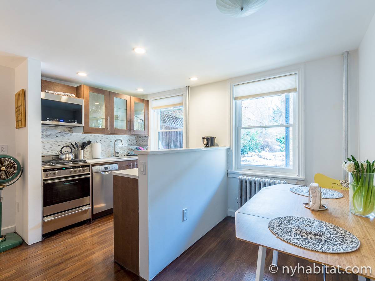 Appréciez la vie dans le quartier de Fort Greene à Brooklyn, où vous ne serez qu’à un court trajet dans les transports de l’animation de Manhattan tout en pouvant apprécier des espaces verts paisibles comme Fort Greene Park qui ne se trouve qu’à quelques pas en face de votre rue ! De plus, de nombreux restaurants, bars et boutiques où vous arrêter se trouvent dans le quartier. À juste un ou deux pâtés de maison de chaque côté de l’appartement, vous trouverez Cafe Paulette, un bistrot français qui sert des vins bio. Pour une soirée à vous cultiver ou vous divertir, allez dans l’un des nombreux lieux de divertissement du quartier : vous pourrez assister à un concert ou un match de sport à Barclays Center, ou bien assister à une représentation ou regarder un film à la célèbre Brooklyn Academy of Music. Si vous préférez un peu de paix et de tranquillité, retournez dans l’appartement meublé et détendez-vous dans le jardin !