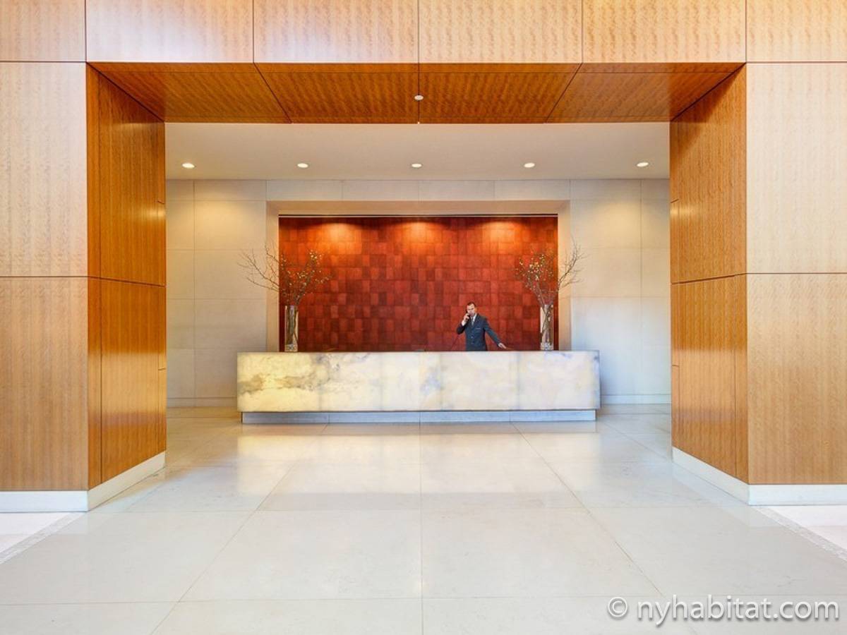 Cet appartement T2 élégant avec salle de bain se trouve au 5ème étage (équivalent du 4ème étage en Europe) d’un immeuble avec ascenseur qui propose les services d’un portier à plein temps ainsi que des aménagements, comme une buanderie et une salle de sport. L’immeuble se trouve à proximité de 34th Street & 3rd Avenue, dans le quartier résidentiel de Kips Bay, à Midtown East, dans l’arrondissement de Manhattan.