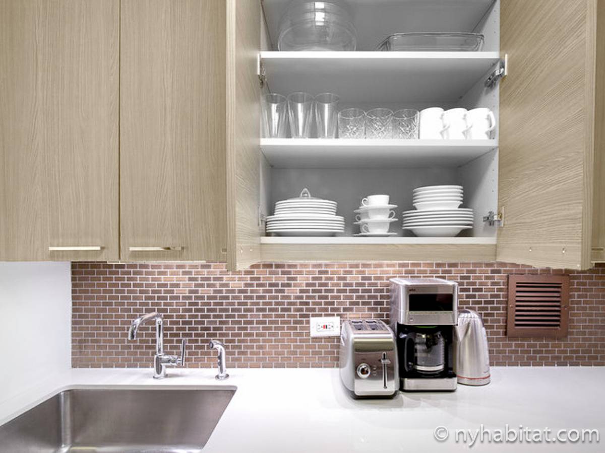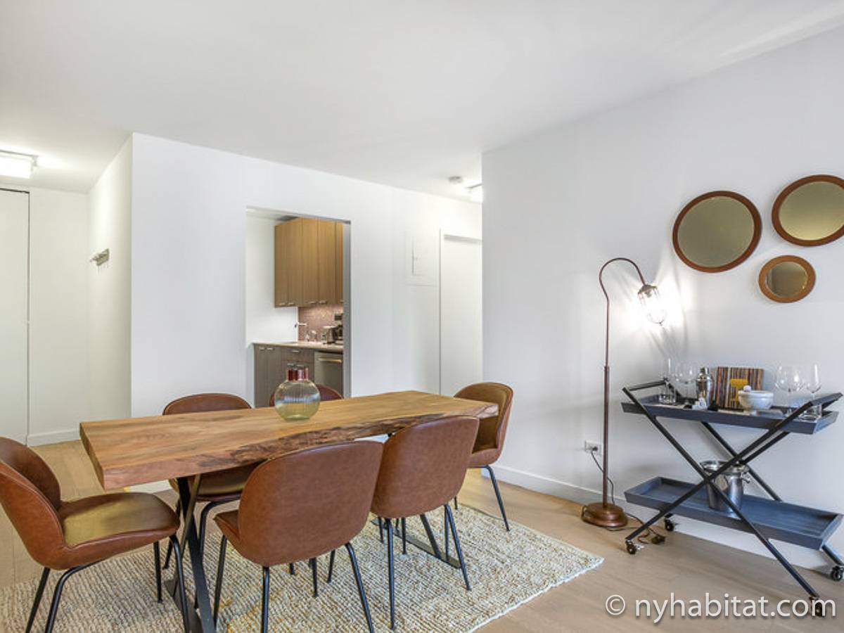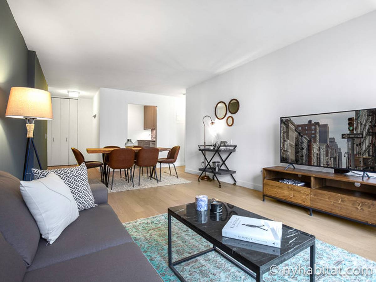 Cet appartement T2 entièrement meublé se situe au cœur du quartier de Tribeca à Manhattan. Il se trouve au 17ème étage (équivalent du 16ème étage en Europe) d’un building avec ascenseur où les animaux sont les bienvenus, et qui propose les services d’un portier à plein temps, ainsi que des aménagements de luxe, comme une salle de sport et une piscine intérieure.