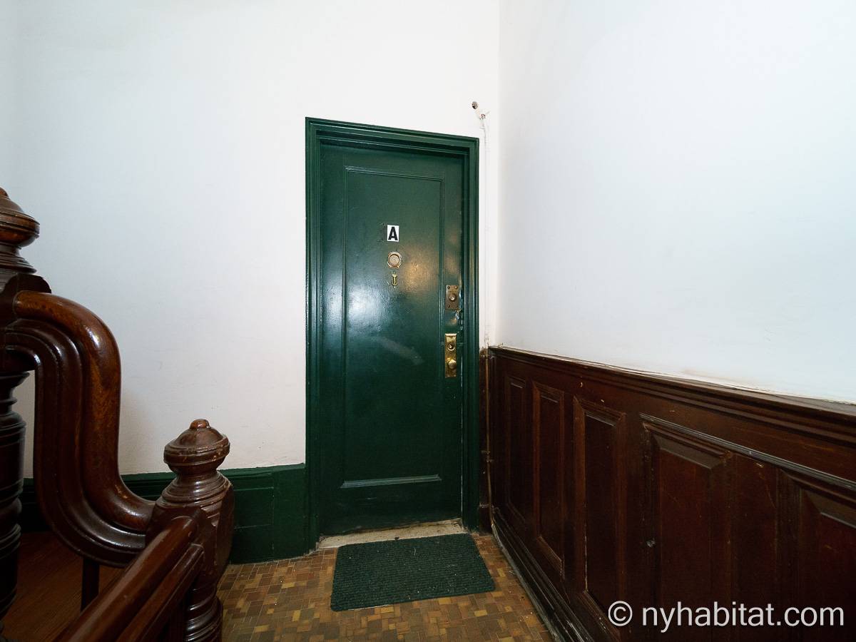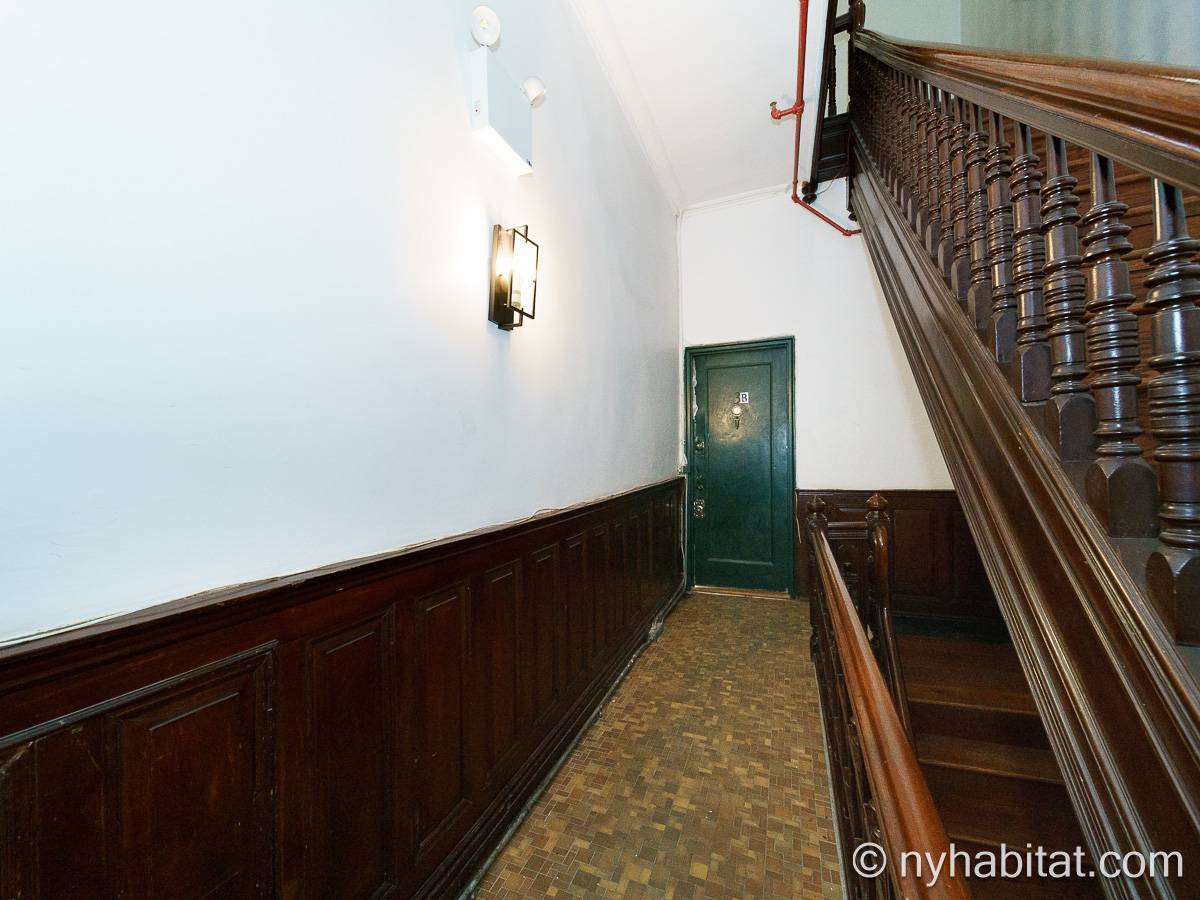 Cet appartement T2 entièrement meublé se situe au 3e étage (l’équivalent du 2e étage en Europe) d’une maison de ville historique de l’Upper West Side. L’immeuble sans ascenseur se trouve au coin de la 88e rue et de Columbus Avenue.