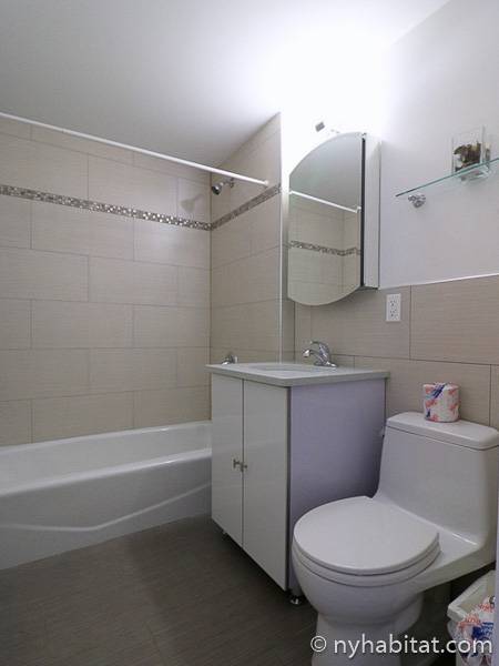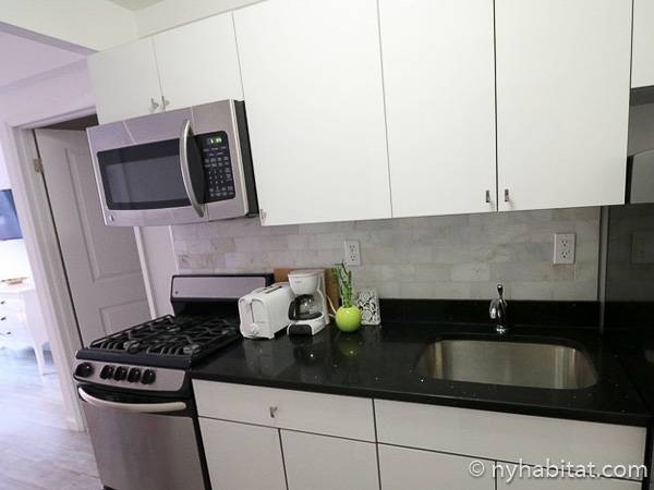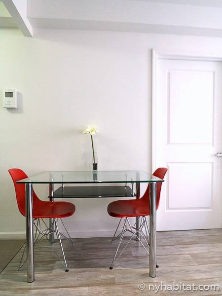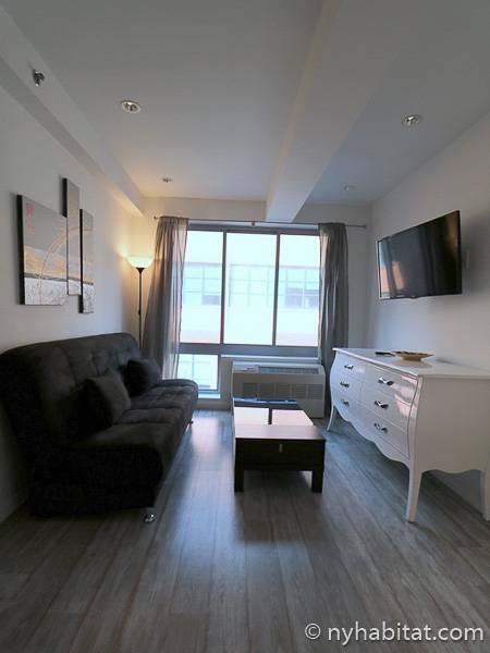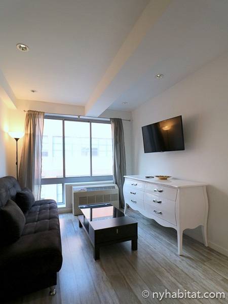 Cet appartement T3 meublé avec salle de bain de Midtown West se trouve dans le quartier new-yorkais de Hell’s Kitchen, à Manhattan. Vous le trouverez dans un immeuble qui dispose d’un toit-terrasse, d’une buanderie et d’un système de sécurité, sur West 48th Street et 10th Avenue.