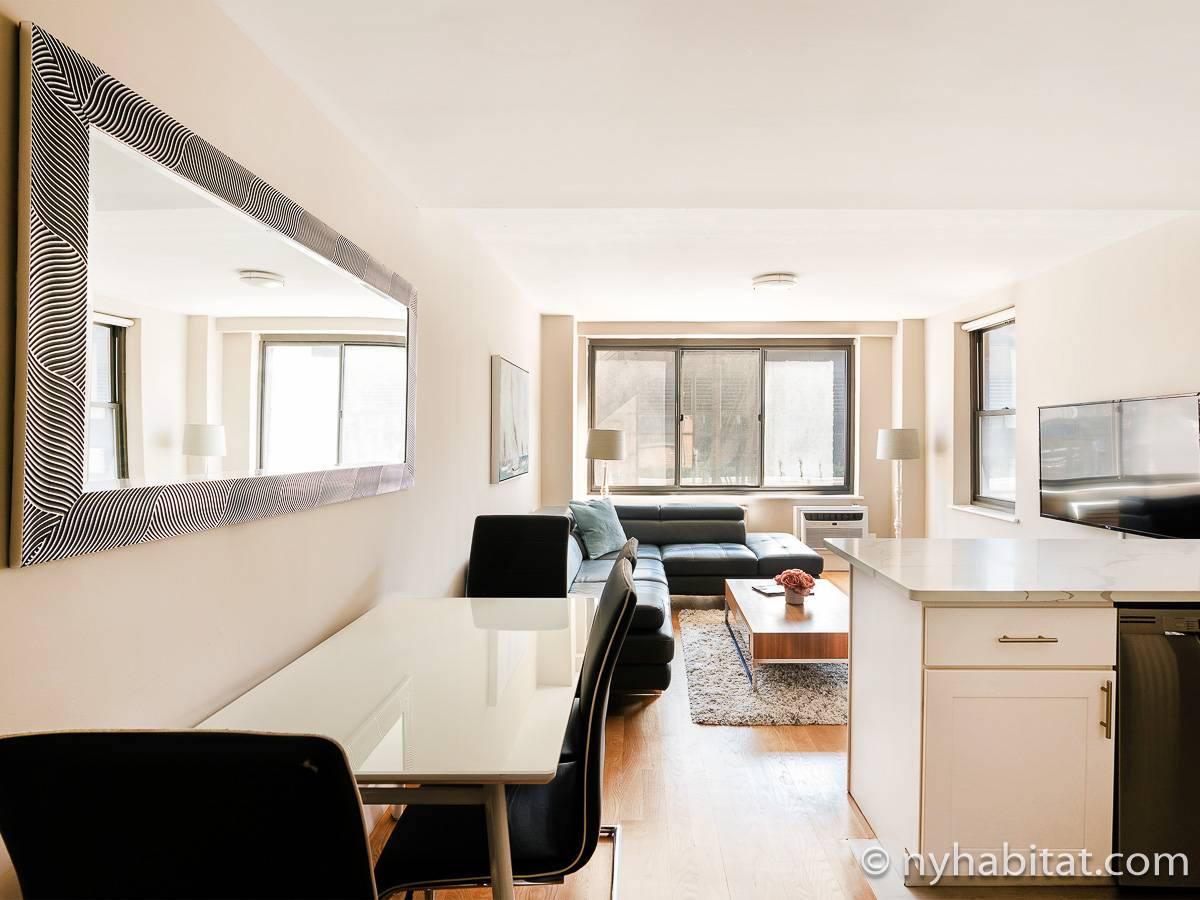 Cet appartement T3 meublé est situé dans l'Upper West Side de Manhattan, à New York. Il se trouve au 1er étage (l’équivalent du rez-de-chaussée en Europe) d’une résidence qui dispose d'une salle de sport et d'un ascenseur.