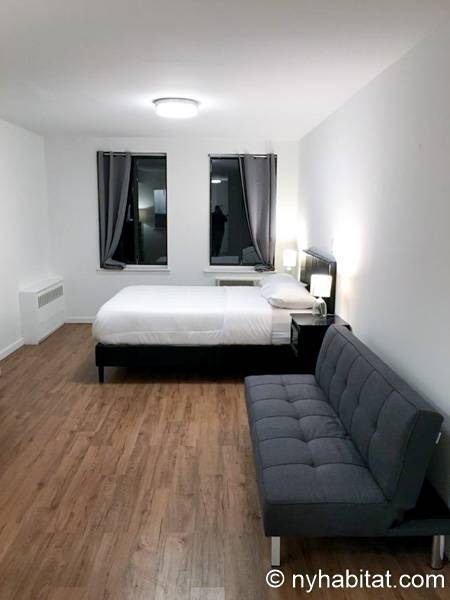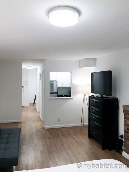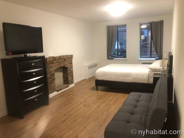 Cette location meublée dispose de parquet et de meubles parmi lesquels figurent un canapé, une télévision et une table à manger. Dans le coin cuisine de ce studio T1, vous trouverez un réfrigérateur/congélateur, un four ainsi qu’un micro‑ondes. Après avoir passé la nuit à explorer New York ou à vous reposer à côté de la cheminée décorative, allez vous allonger dans le lit double. Il y a une baignoire‑douche dans la salle de bain.