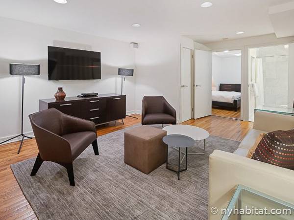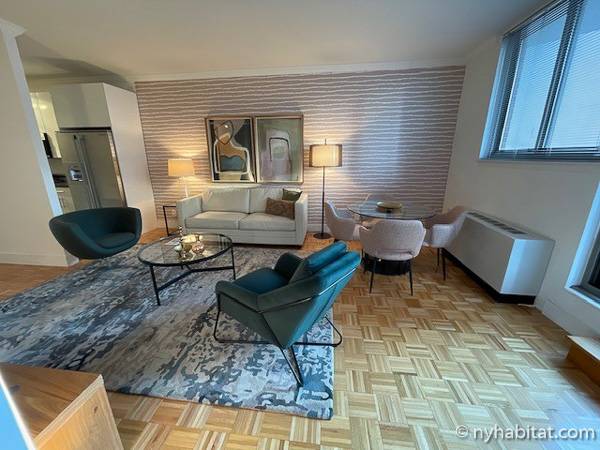 Cet appartement T4 en duplex meublé et doté d’une salle de bain se trouve dans l’Upper East Side de Manhattan. Située entre East 75th Street et 2nd Avenue, cette location new‑yorkaise à l’agencement principalement ouvert se trouve dans un immeuble avec ascenseur et concierge.