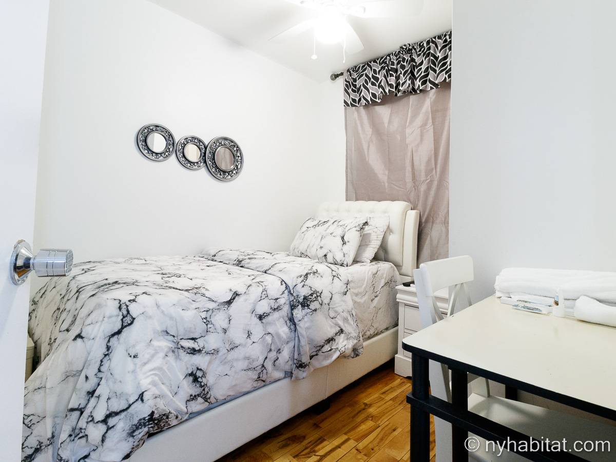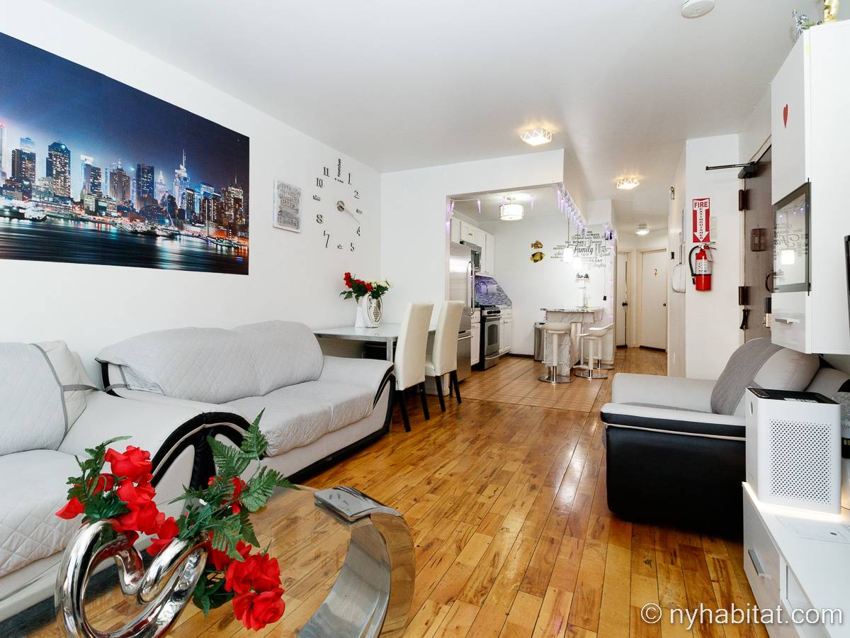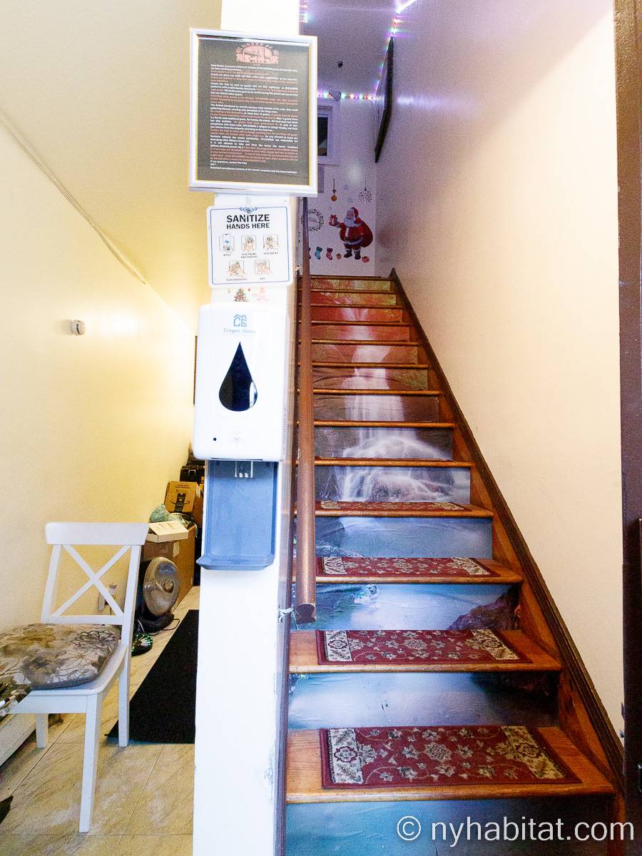 Entre Willoughby Avenue et Throop Avenue, cet appartement T3, meublé, avec deux salles de bain, se situe dans le quartier de Bedford-Stuyvesant, à Brooklyn, New York. D’une surface de 84 m2, il occupe le 2e étage (l’équivalent du premier étage en Europe) d’une maison de ville de 3 étages sans ascenseur.