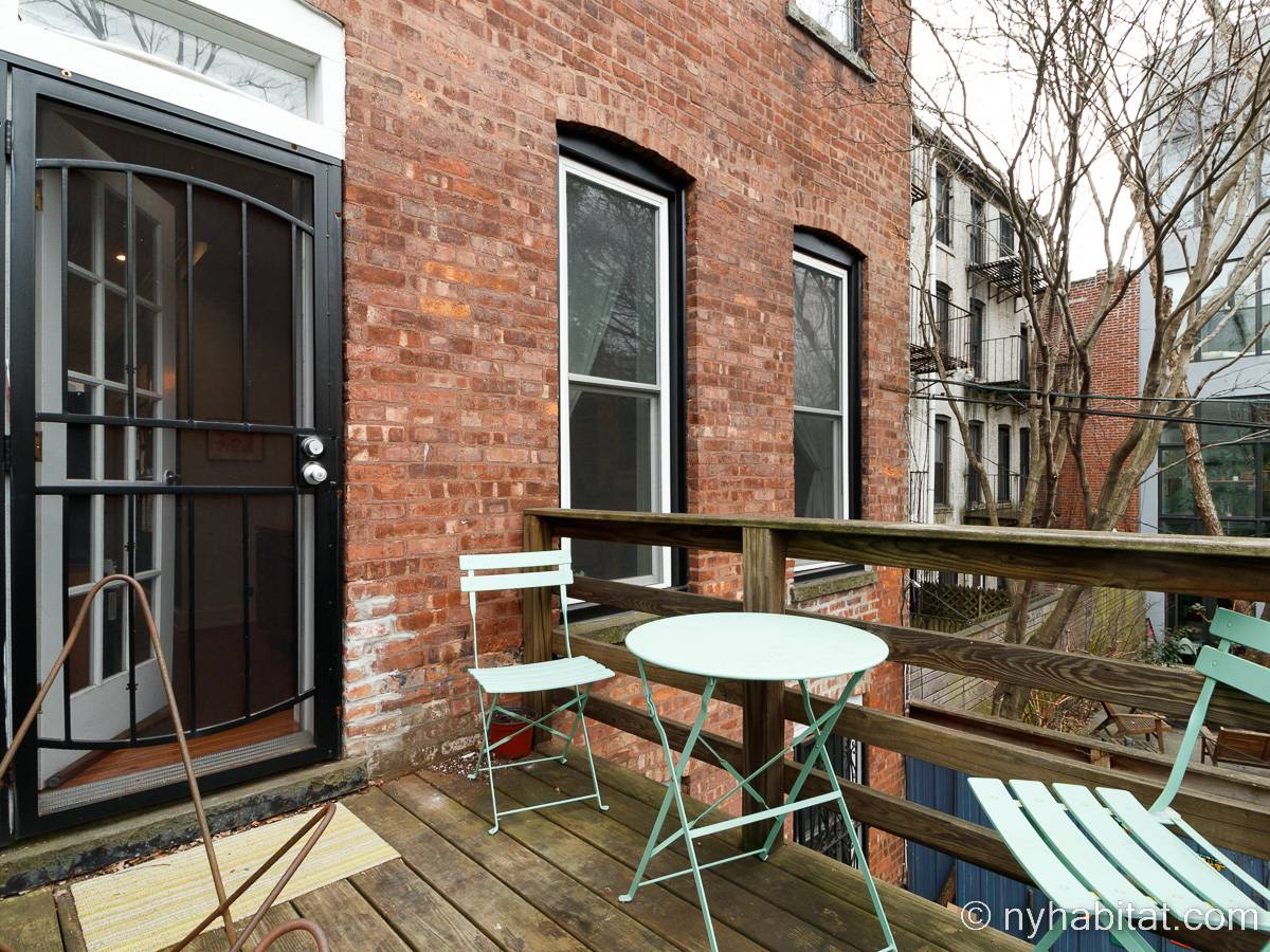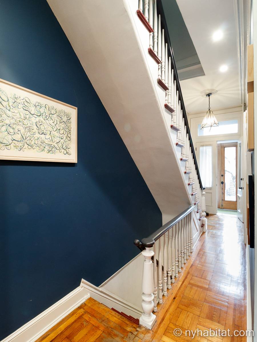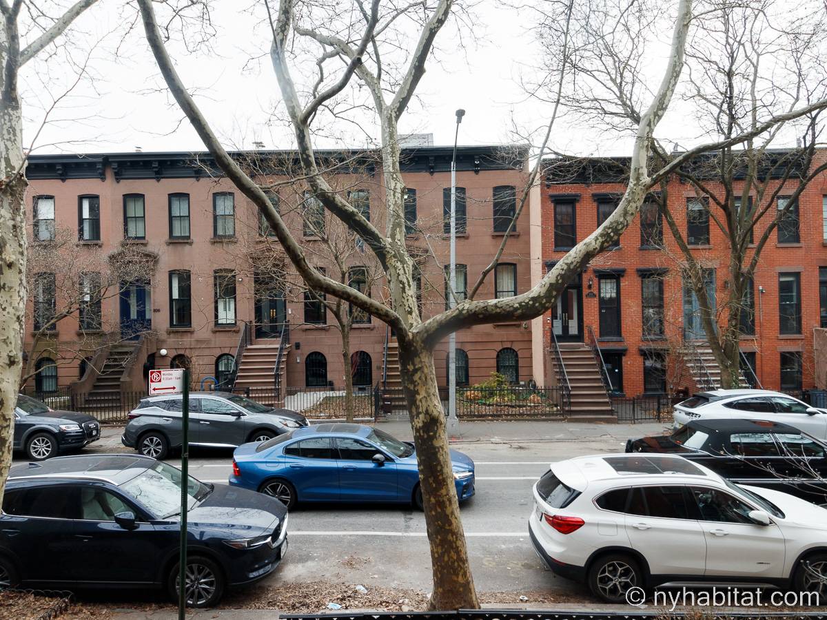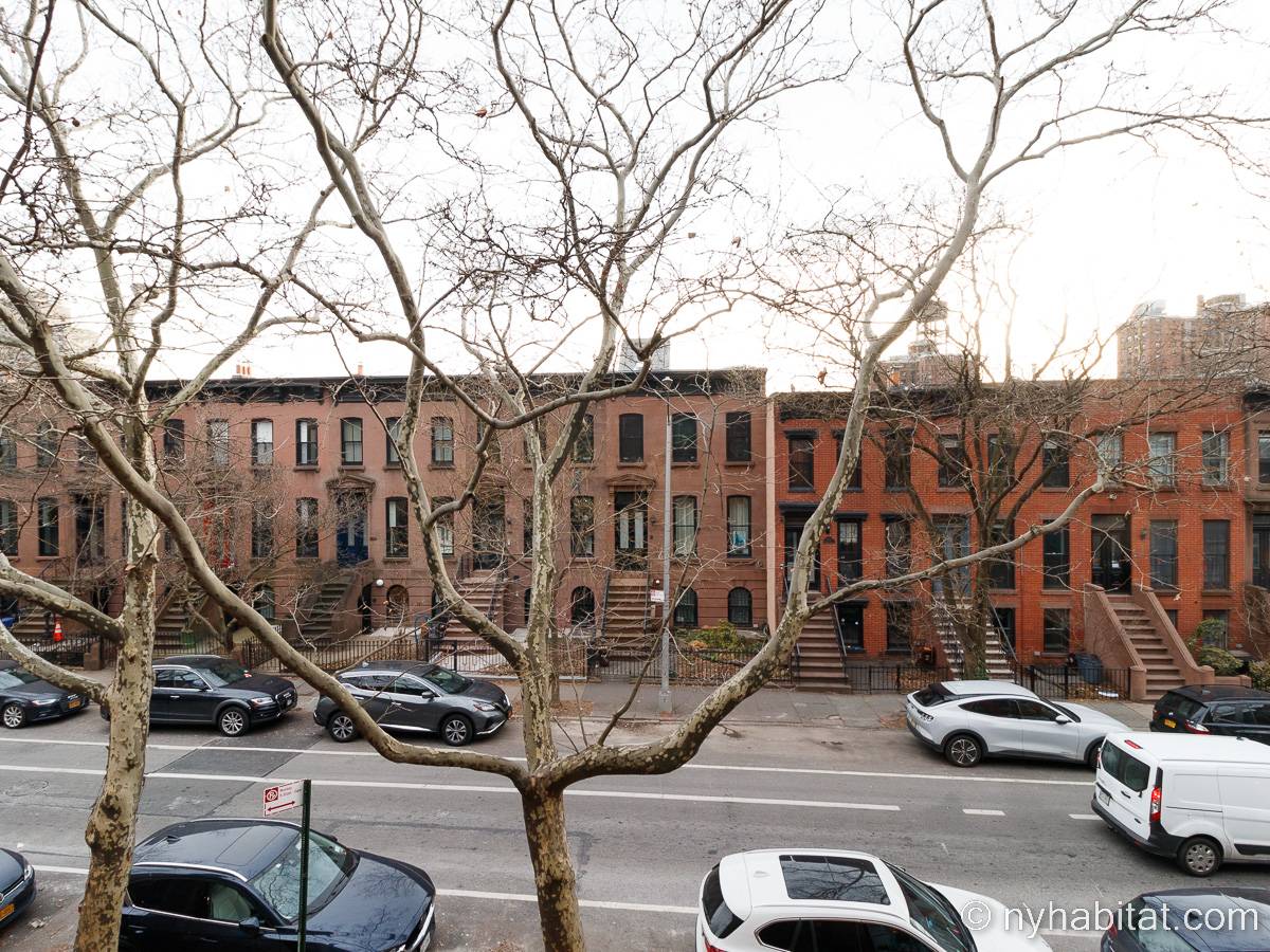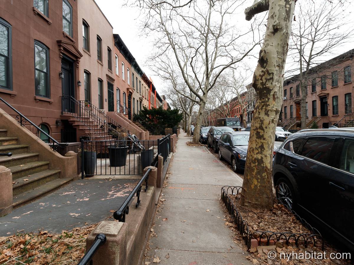 Cet appartement T3, meublé, avec une salle de bain, se situe entre Bergen Street et Bond Street. D’une superficie de 116 m2, ce bien en duplex se trouve aux 2e et 3e étages (l’équivalent des 1er et 2e étages en Europe) d’un immeuble brownstone sans ascenseur de Boerum Hill, un quartier de Brooklyn, à New York. L’appartement comporte un accès à un balcon privatif et à un jardin verdoyant.