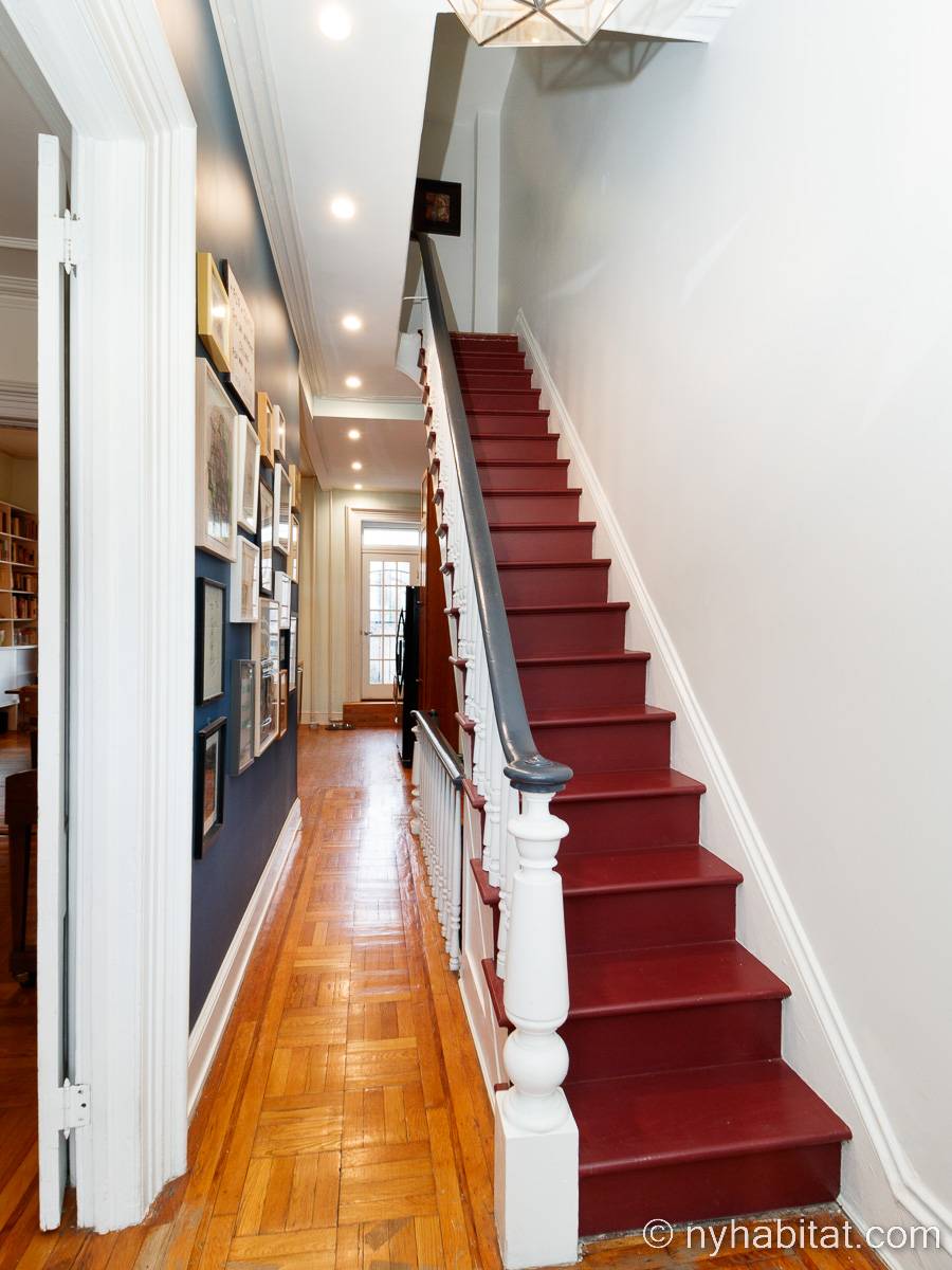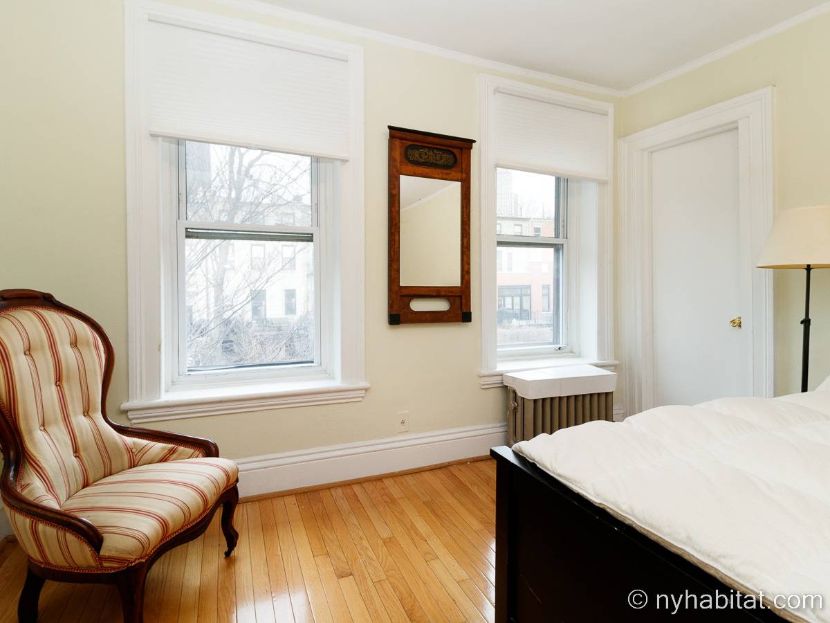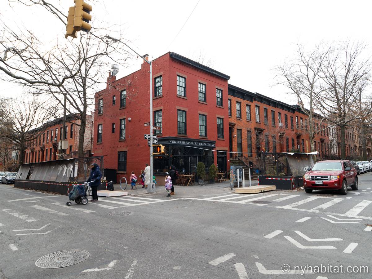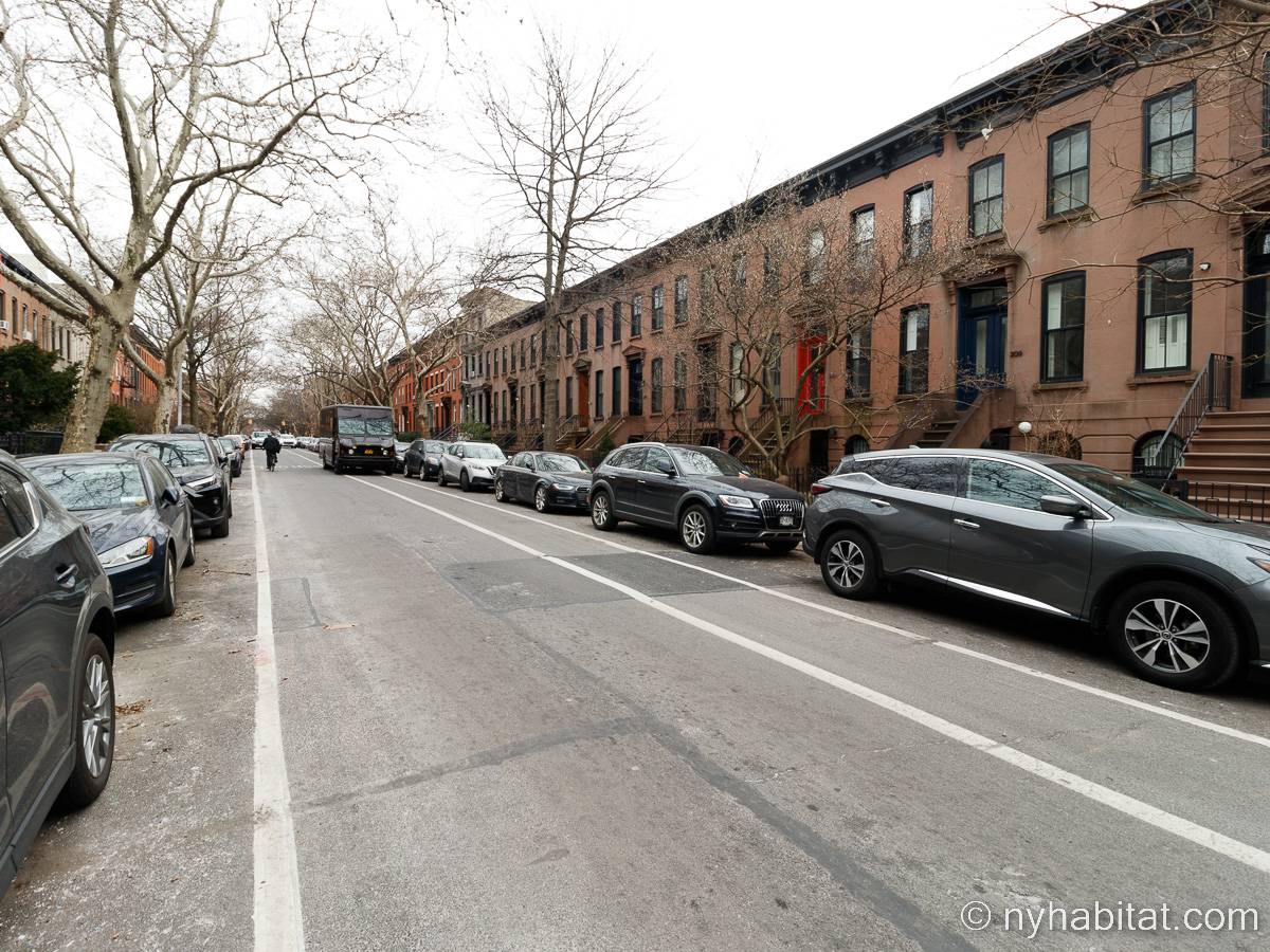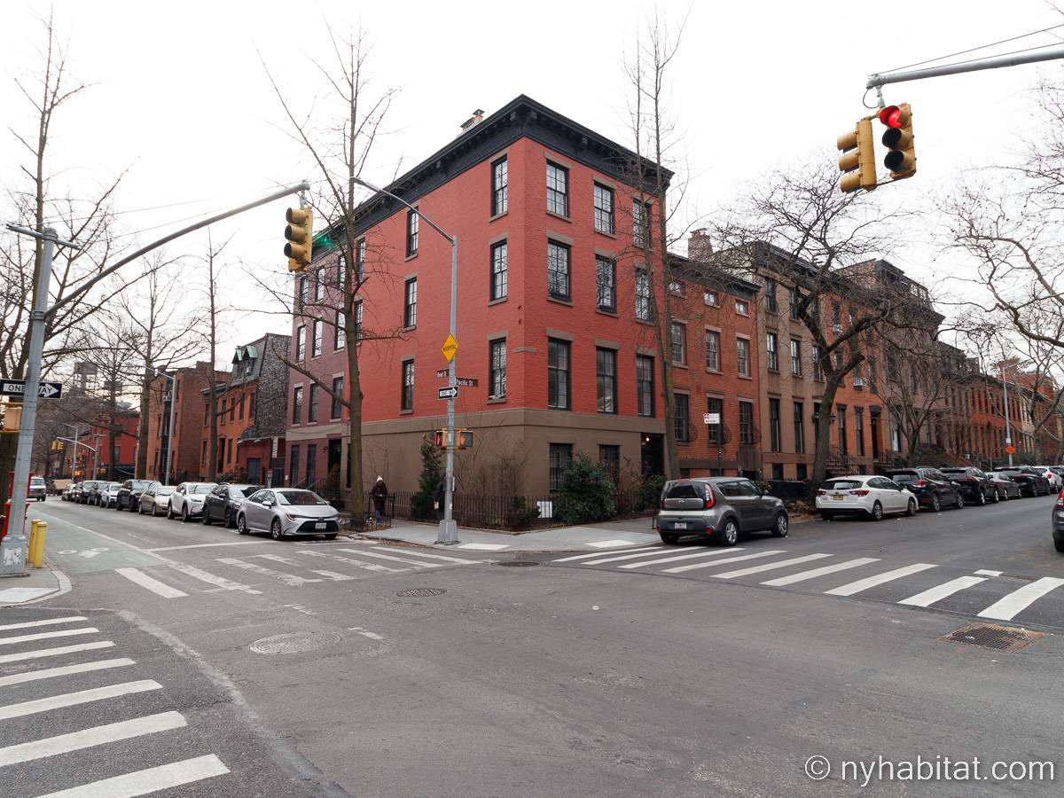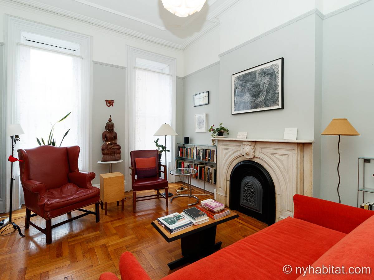 Cet appartement T3, meublé, avec une salle de bain, se situe entre Bergen Street et Bond Street. D’une superficie de 116 m2, ce bien en duplex se trouve aux 2e et 3e étages (l’équivalent des 1er et 2e étages en Europe) d’un immeuble brownstone sans ascenseur de Boerum Hill, un quartier de Brooklyn, à New York. L’appartement comporte un accès à un balcon privatif et à un jardin verdoyant.