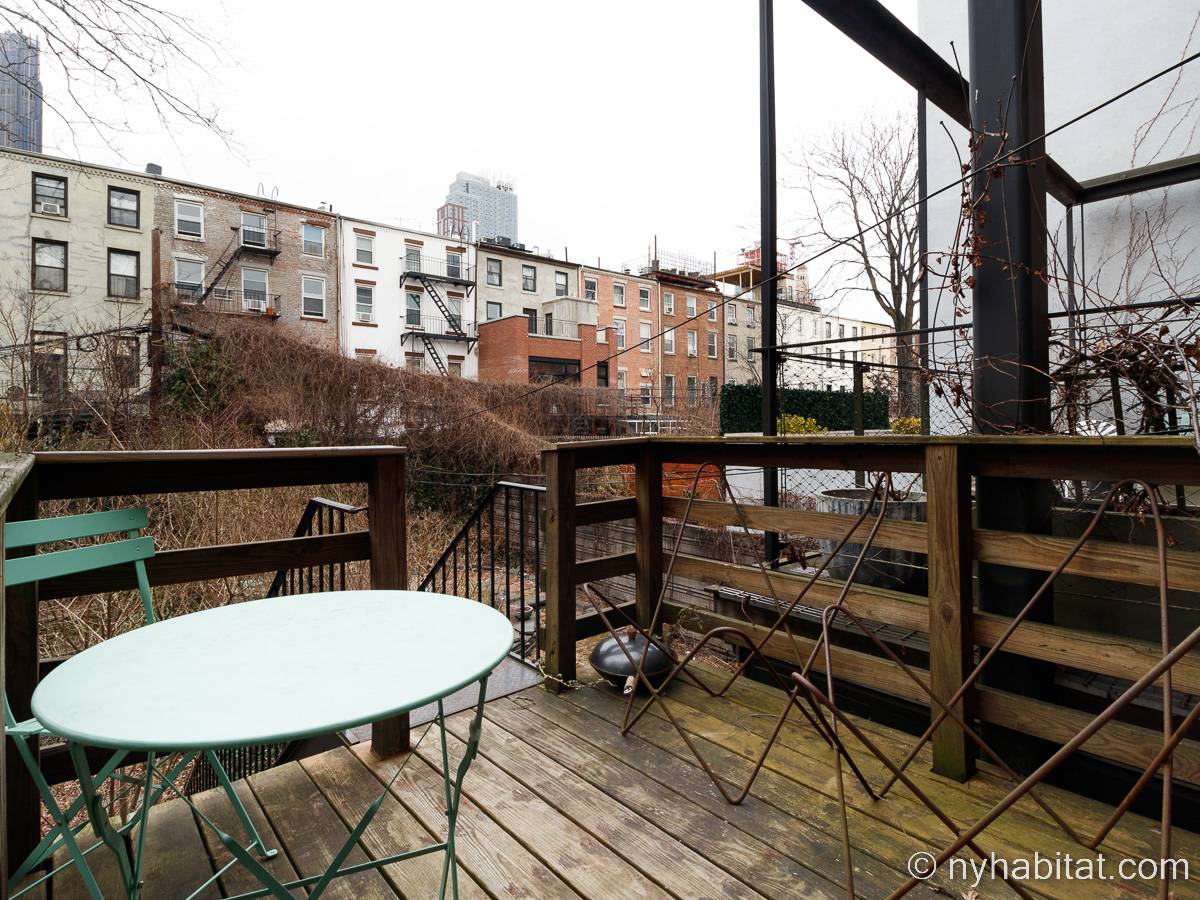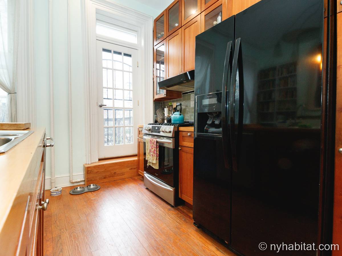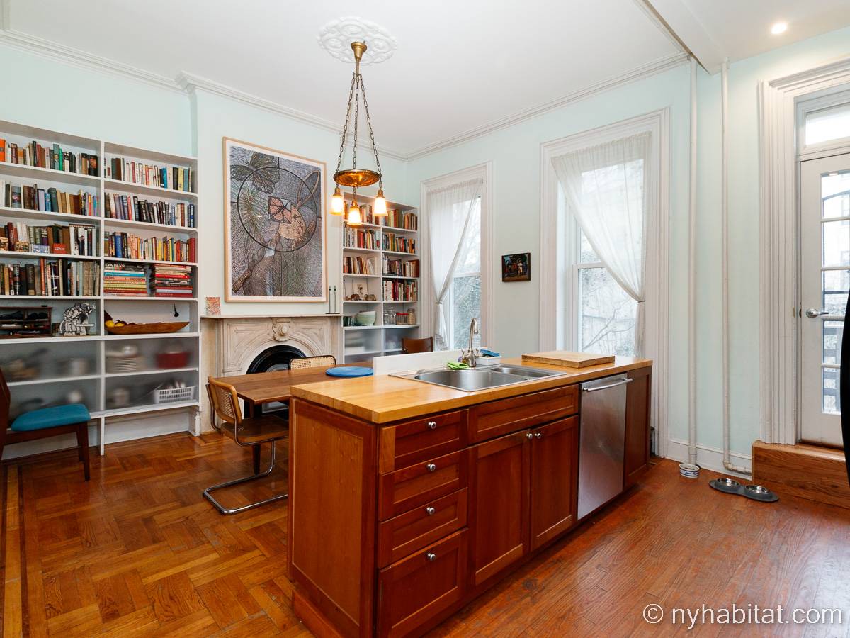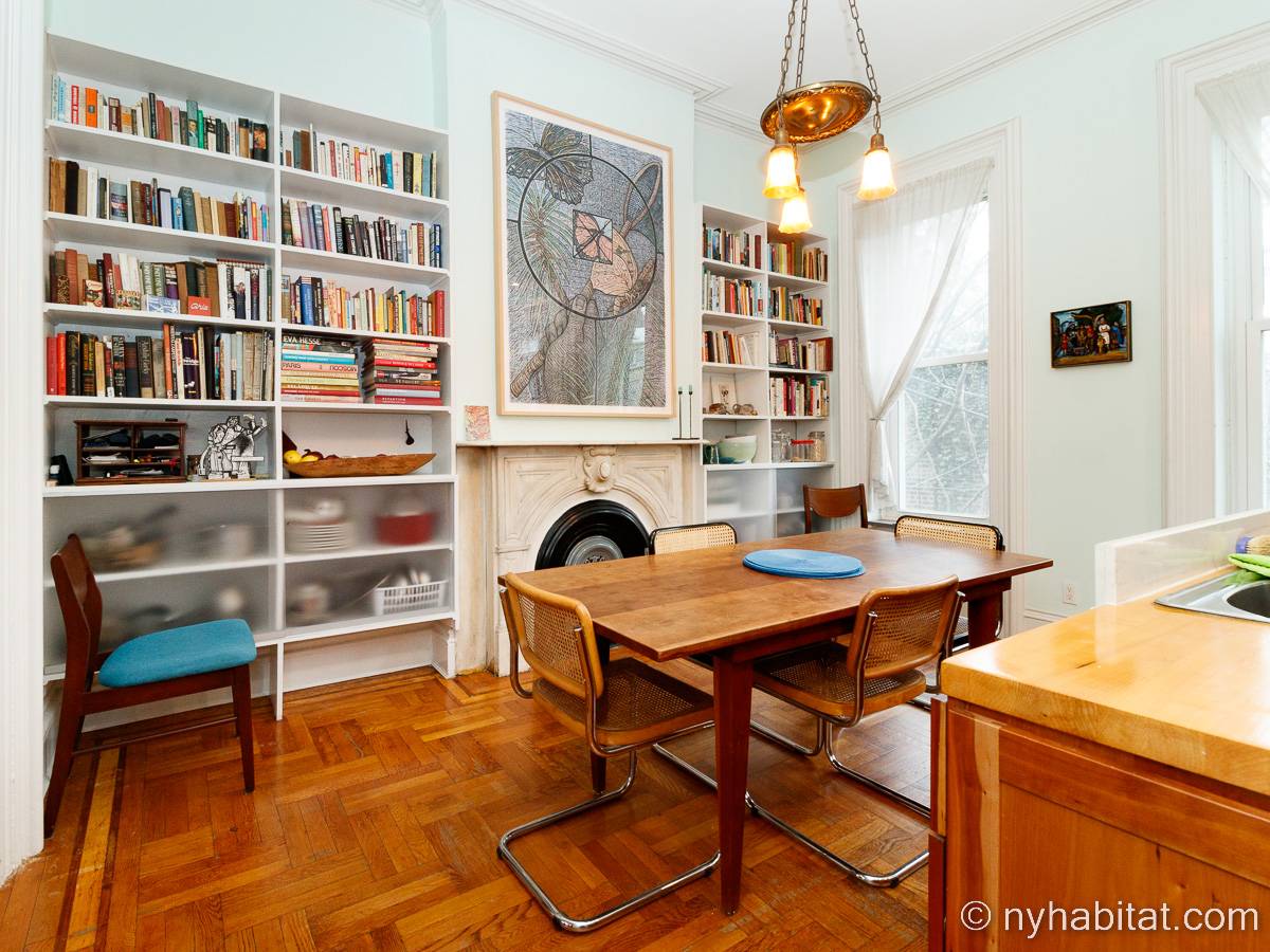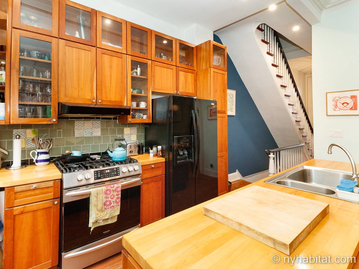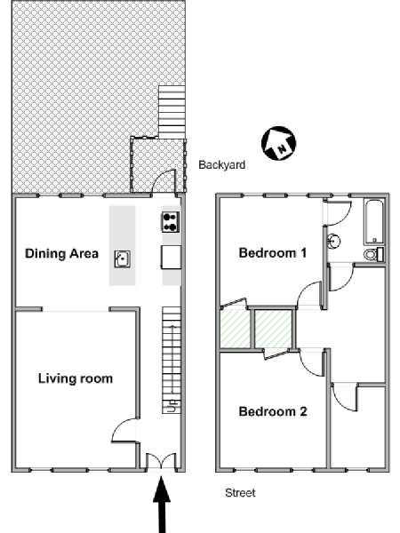 Cet appartement T3, meublé, avec une salle de bain, se situe entre Bergen Street et Bond Street. D’une superficie de 116 m2, ce bien en duplex se trouve aux 2e et 3e étages (l’équivalent des 1er et 2e étages en Europe) d’un immeuble brownstone sans ascenseur de Boerum Hill, un quartier de Brooklyn, à New York. L’appartement comporte un accès à un balcon privatif et à un jardin verdoyant.
