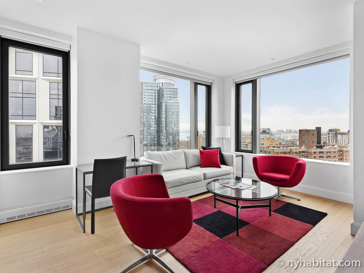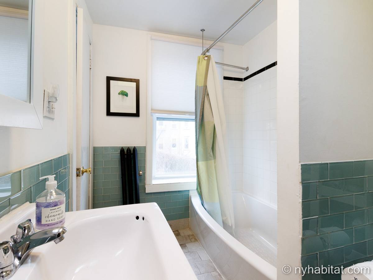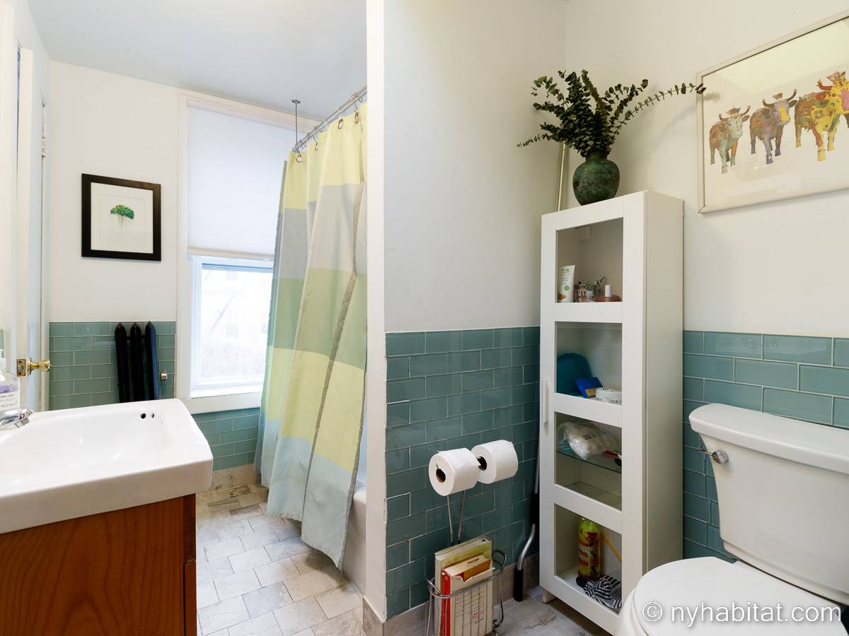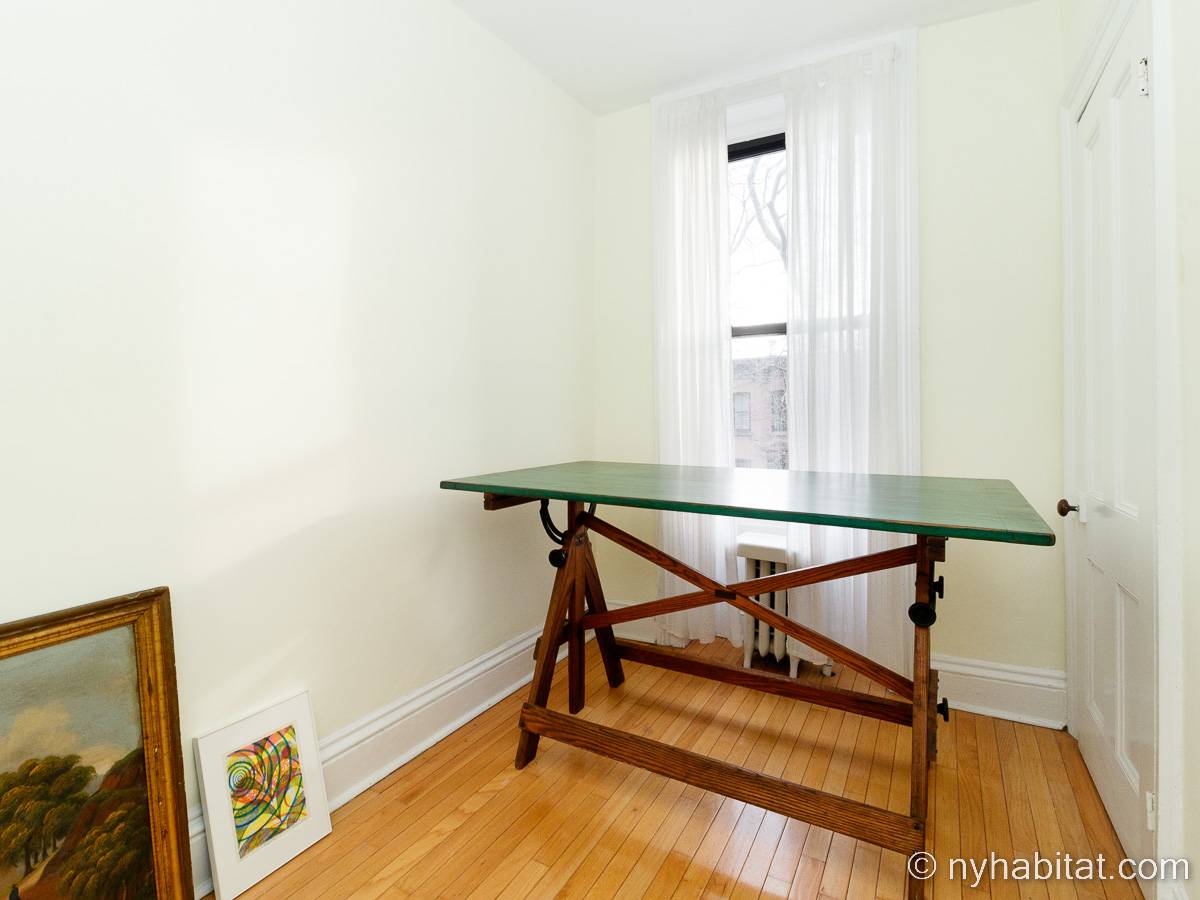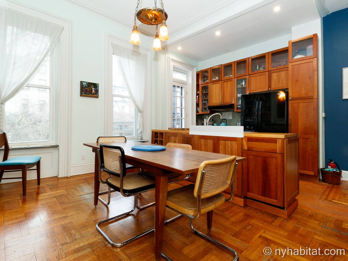 Cet appartement T3, meublé, avec une salle de bain, se situe entre Bergen Street et Bond Street. D’une superficie de 116 m2, ce bien en duplex se trouve aux 2e et 3e étages (l’équivalent des 1er et 2e étages en Europe) d’un immeuble brownstone sans ascenseur de Boerum Hill, un quartier de Brooklyn, à New York. L’appartement comporte un accès à un balcon privatif et à un jardin verdoyant.